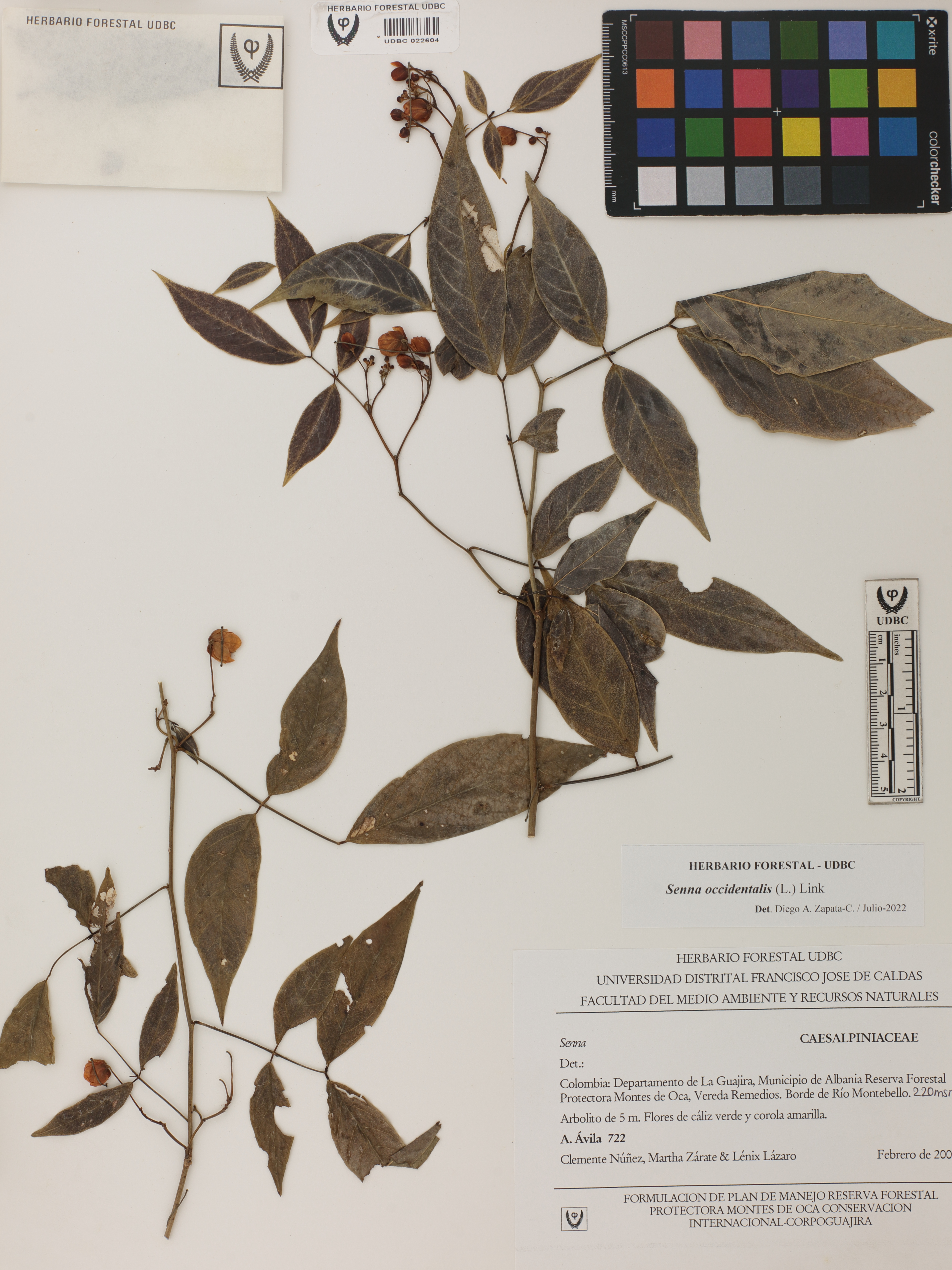 Fotografía del ejemplar Ávila, F. 722, determinado como Senna occidentalis en el año 2022