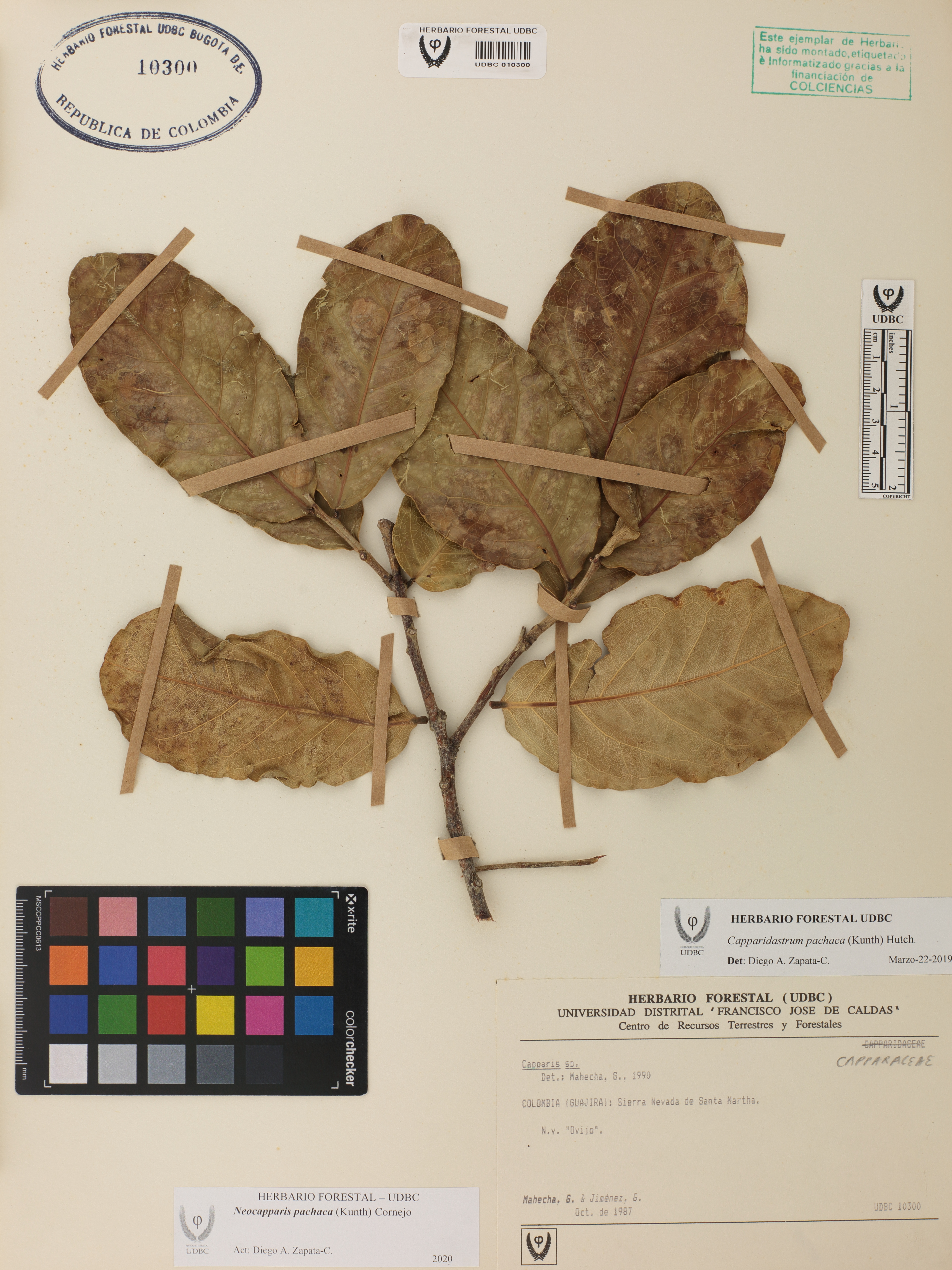 Fotografía del ejemplar Mahecha, G., determinado como Neocapparis pachaca en el año 2020