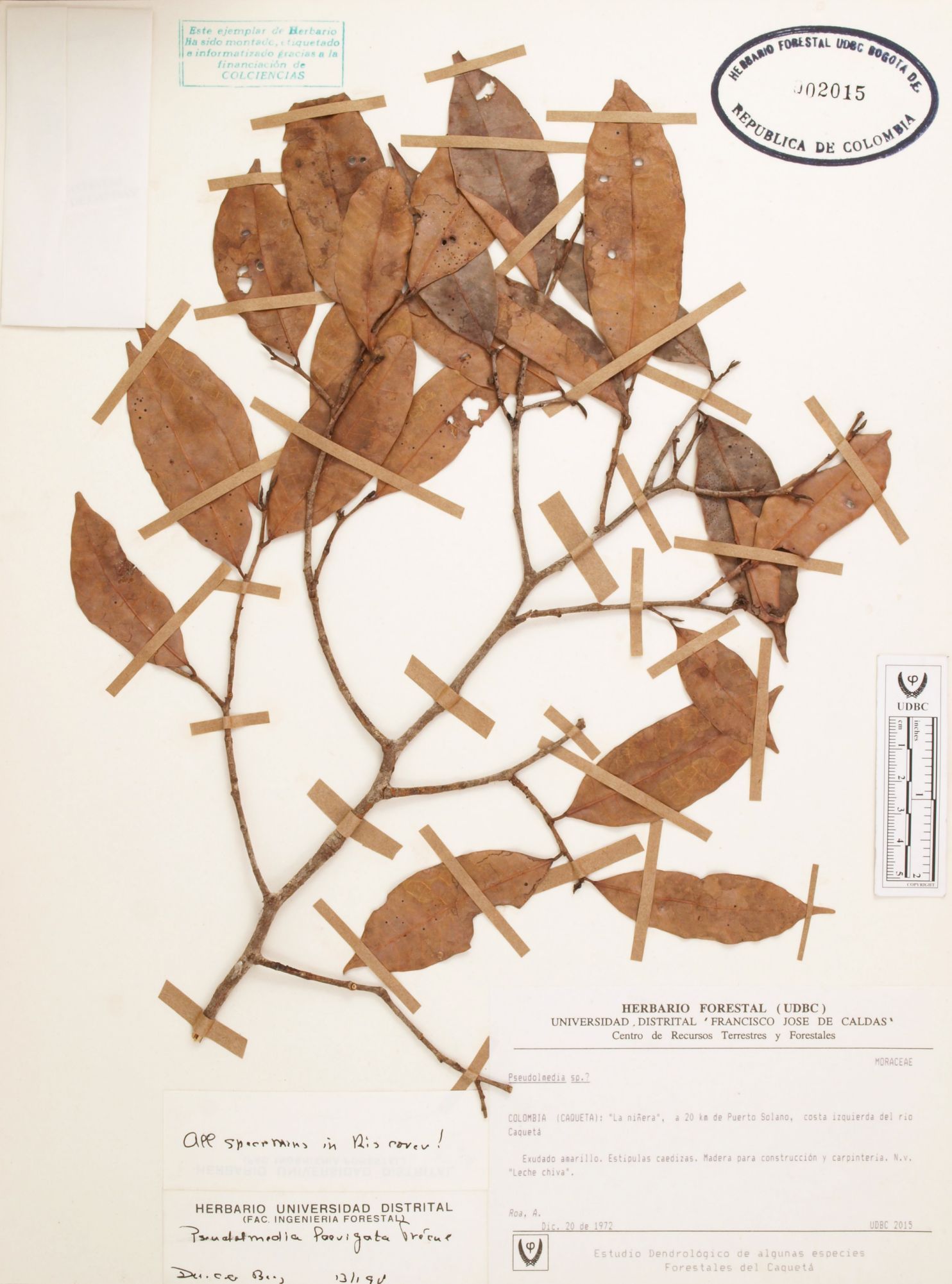 Fotografía del ejemplar Roa, A., determinado como Pseudolmedia laevigata en el año 1997