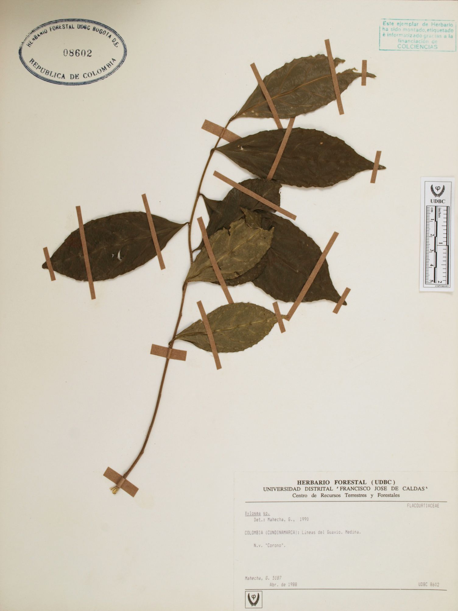 Fotografía del ejemplar Mahecha, G. 5187, determinado como Xylosma sp. en el año 1990