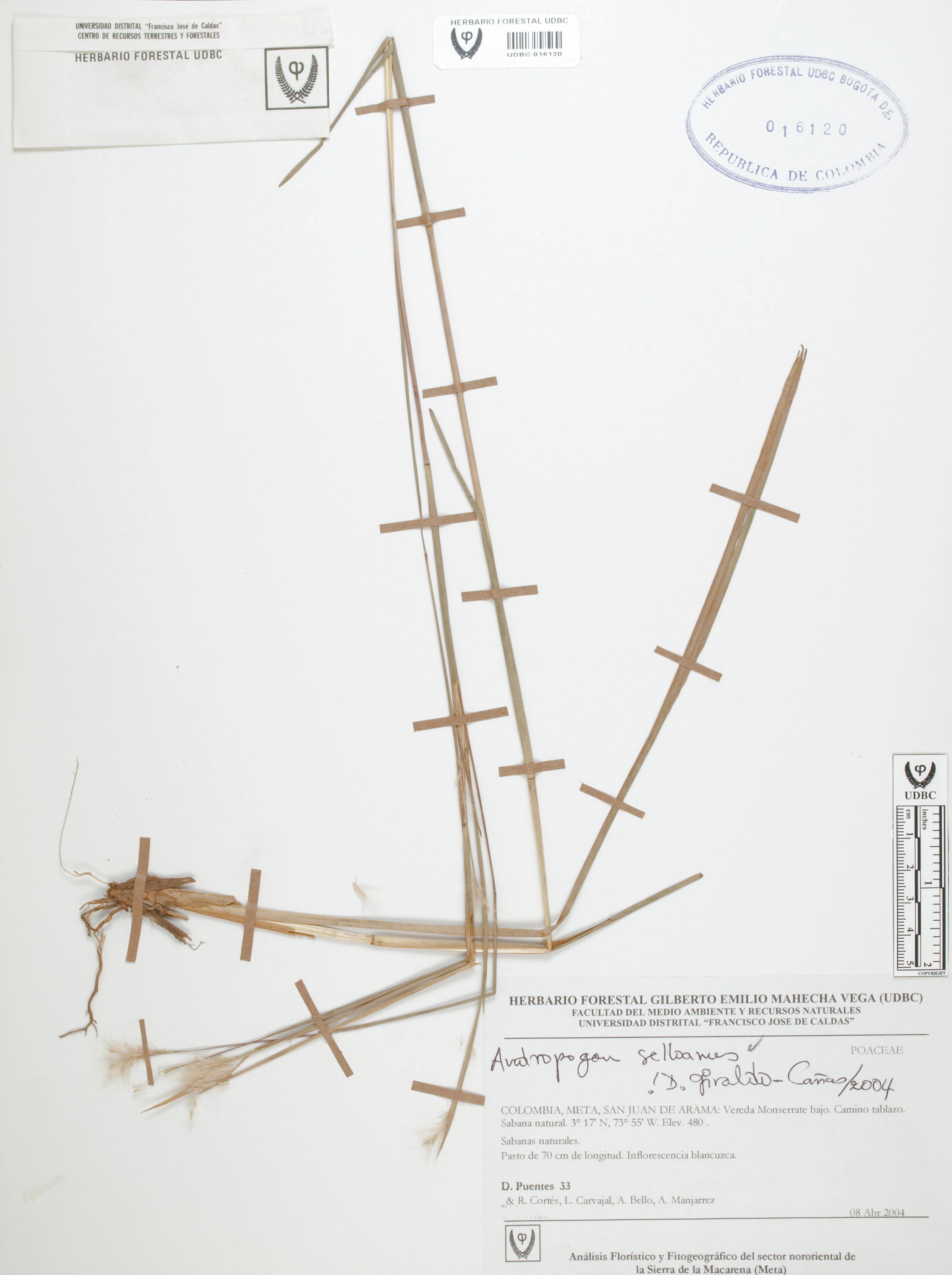 Fotografía del ejemplar Puentes, D. 33, determinado como Andropogon selloanus en el año 2004