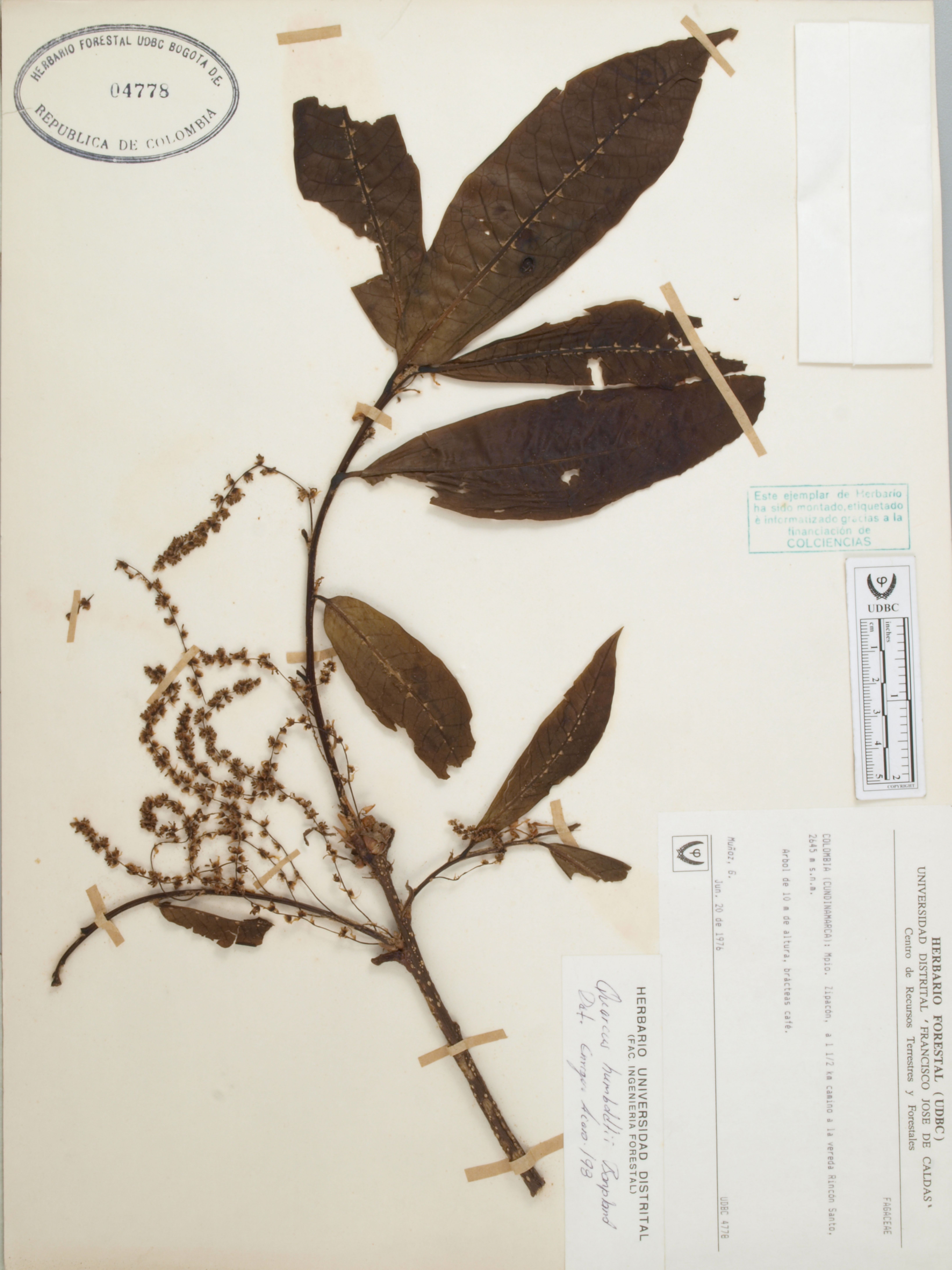 Fotografía del ejemplar Muñoz, G., determinado como Quercus humboldtii en el año 1998