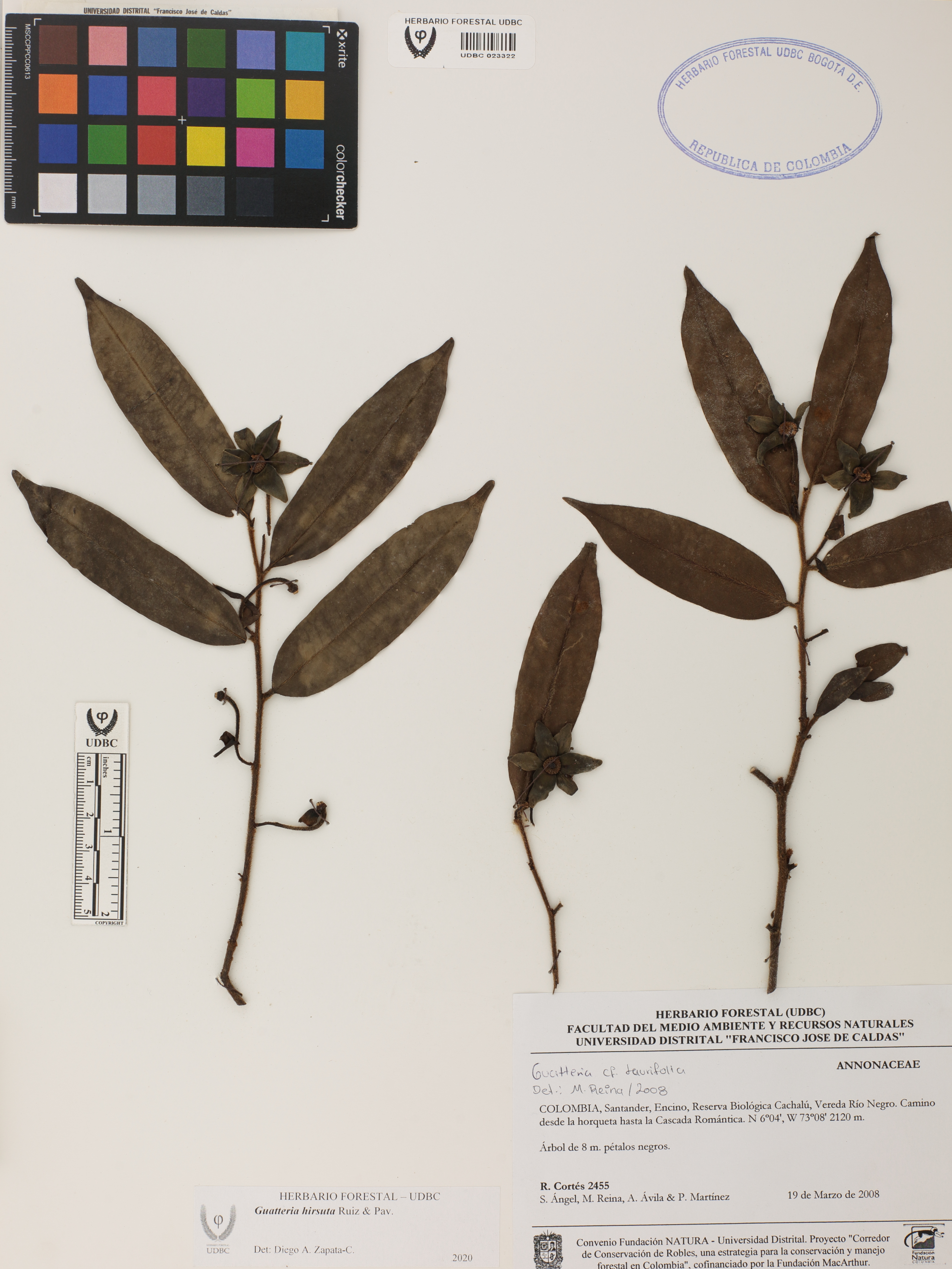 | dc.description | Fotografía del ejemplar Cortés, R. 2455, determinado como Guatteria hirsuta en el año 2020 | |