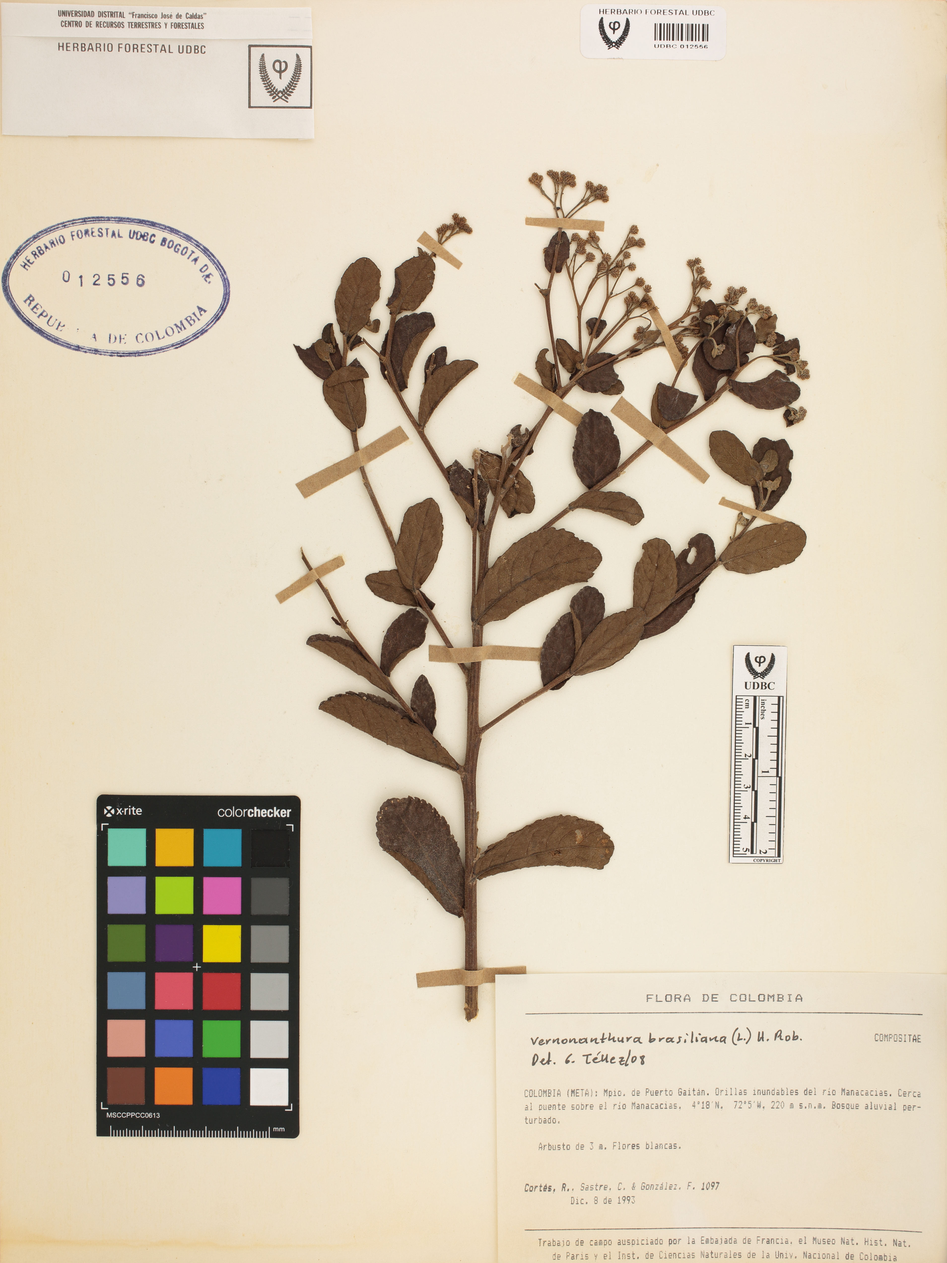 Fotografía del ejemplar Cortés, R. 1097, determinado como Vernonanthura brasiliana en el año 2008