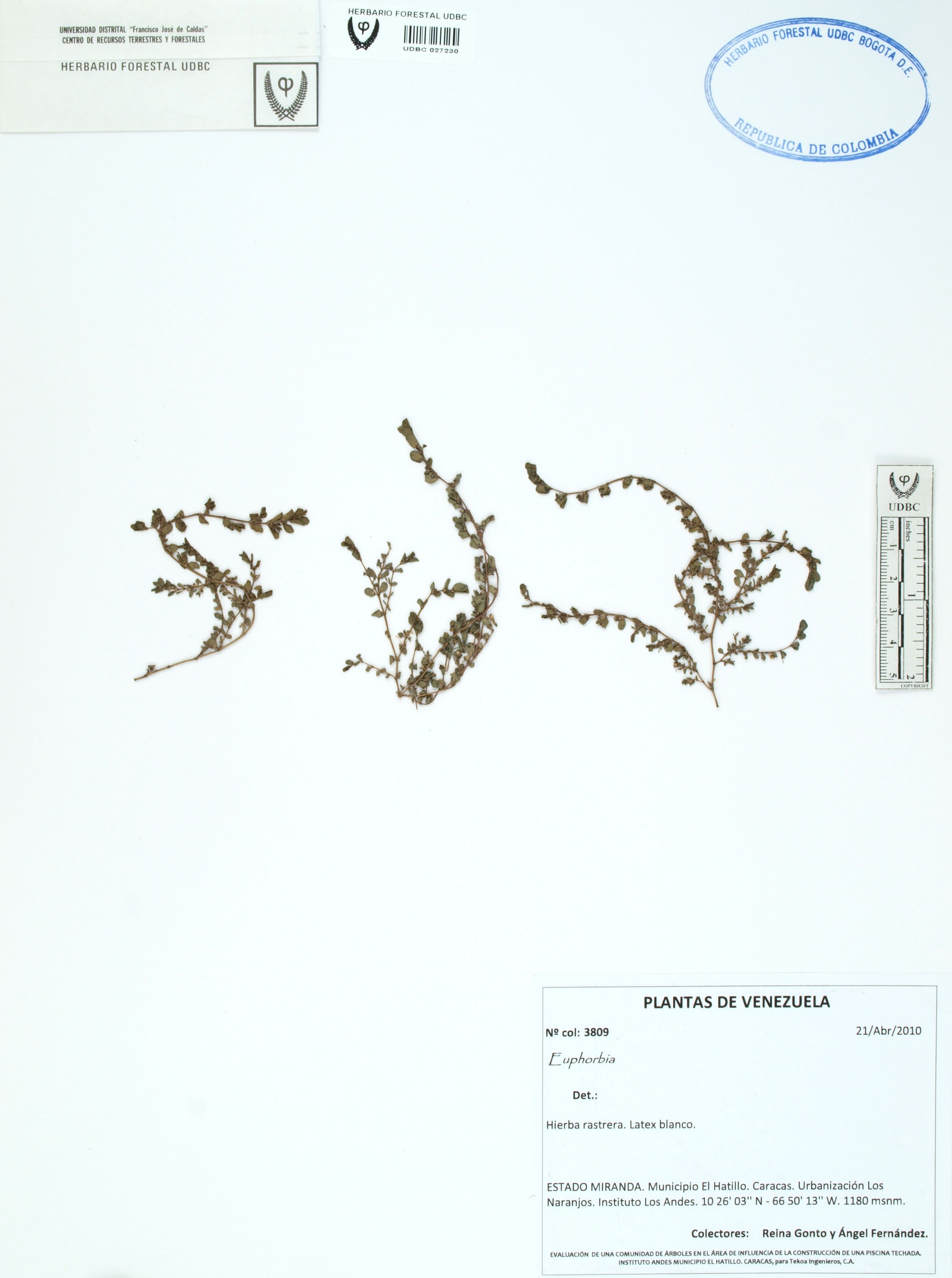 Fotografía del ejemplar Gonto, R. 3809, determinado como Euphorbia sp.