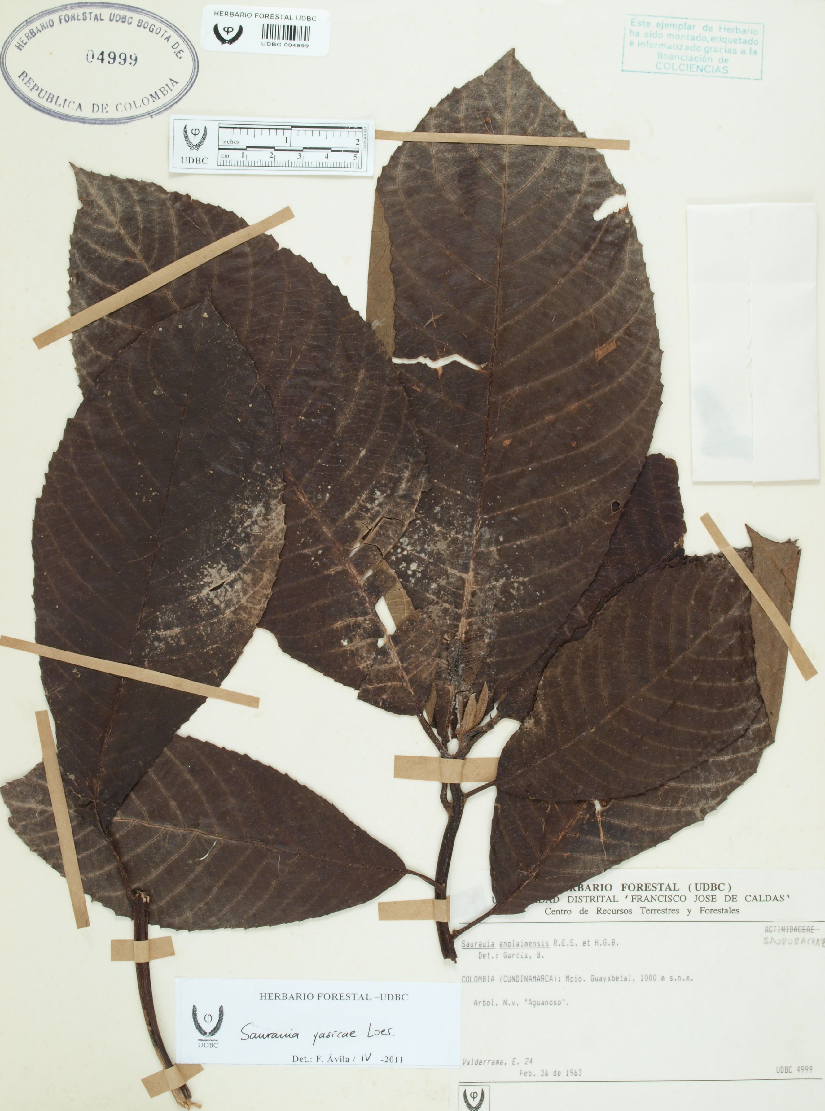 Fotografía del ejemplar Valderrama, E. 24, determinado como Saurauia yasicae en el año 2011