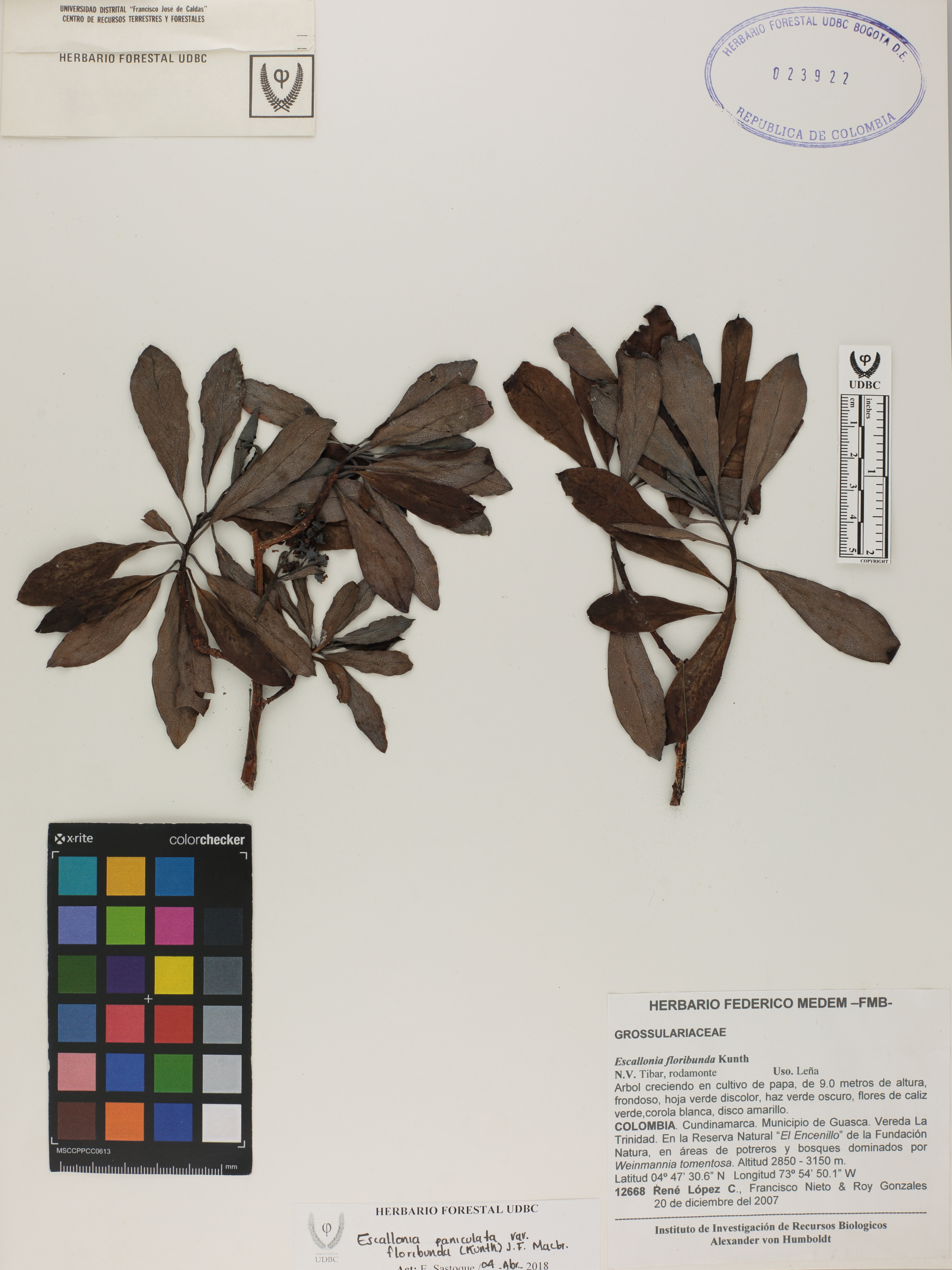Fotografía del ejemplar López, R. 12668, determinado como Escallonia paniculata var. floribunda