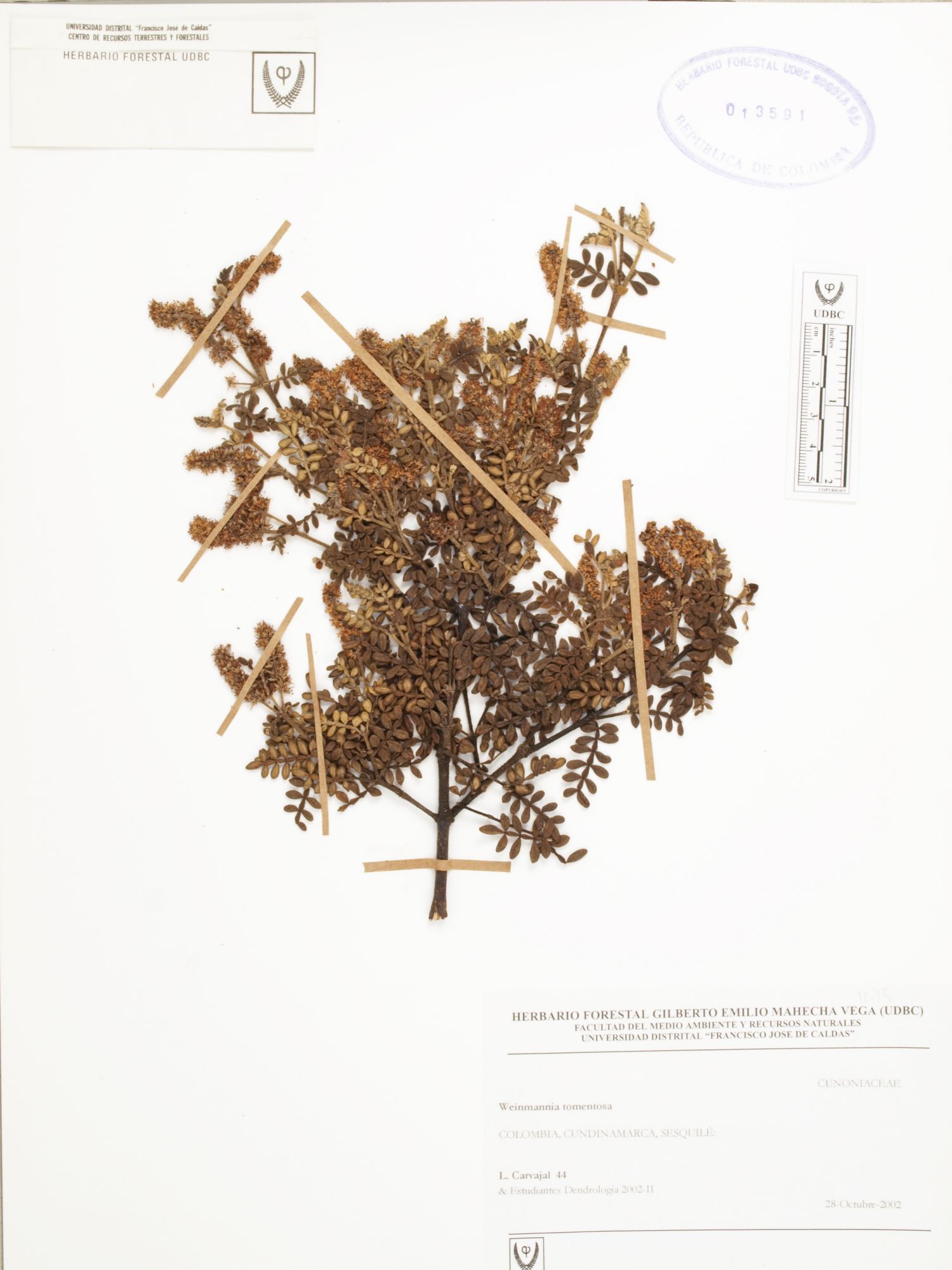 Fotografía del ejemplar Carvajal, L. 44, determinado como Weinmannia tomentosa