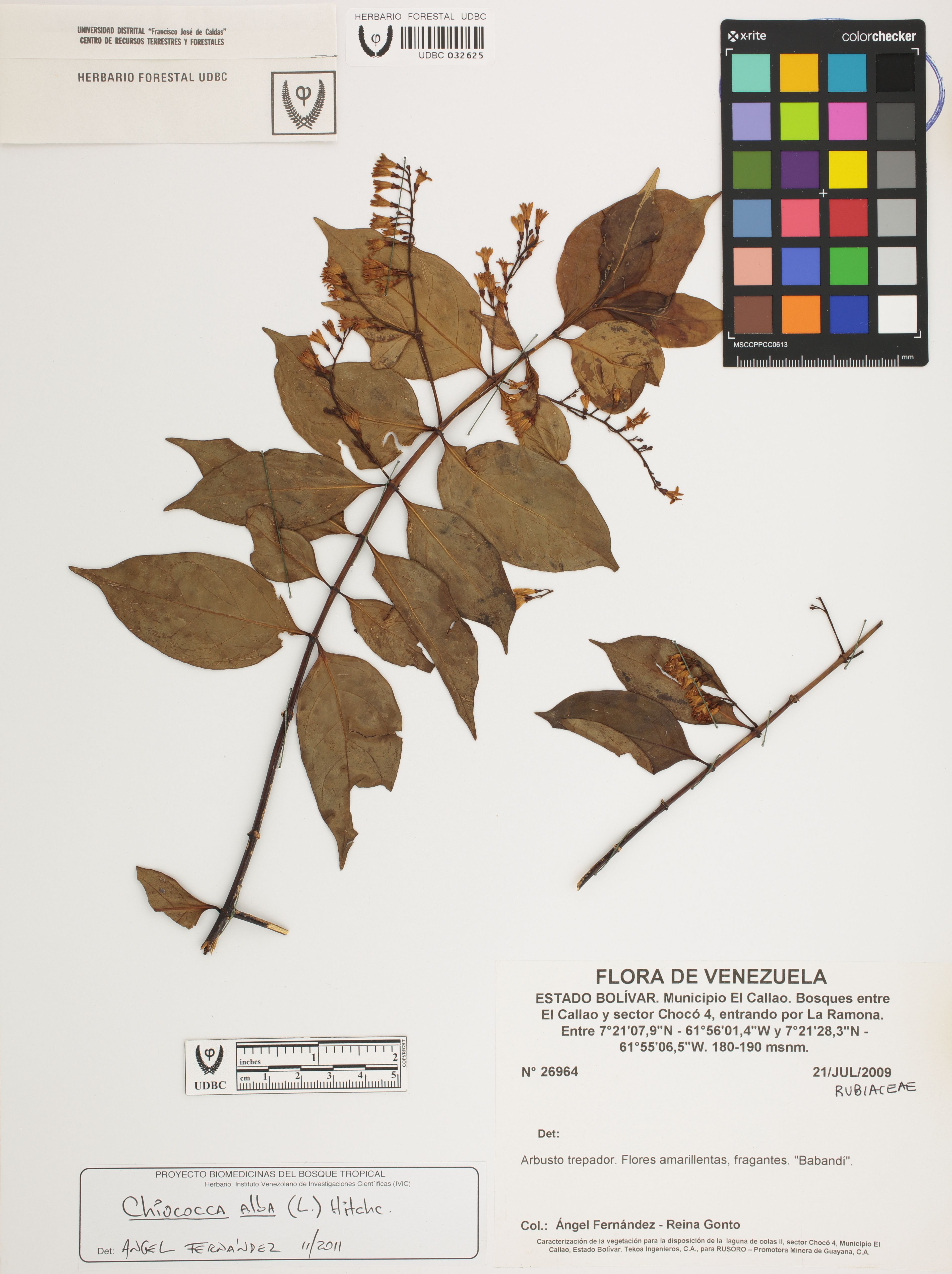 Fotografía del ejemplar Fernández, A. 26964, determinado como Chiococca alba en el año 2011