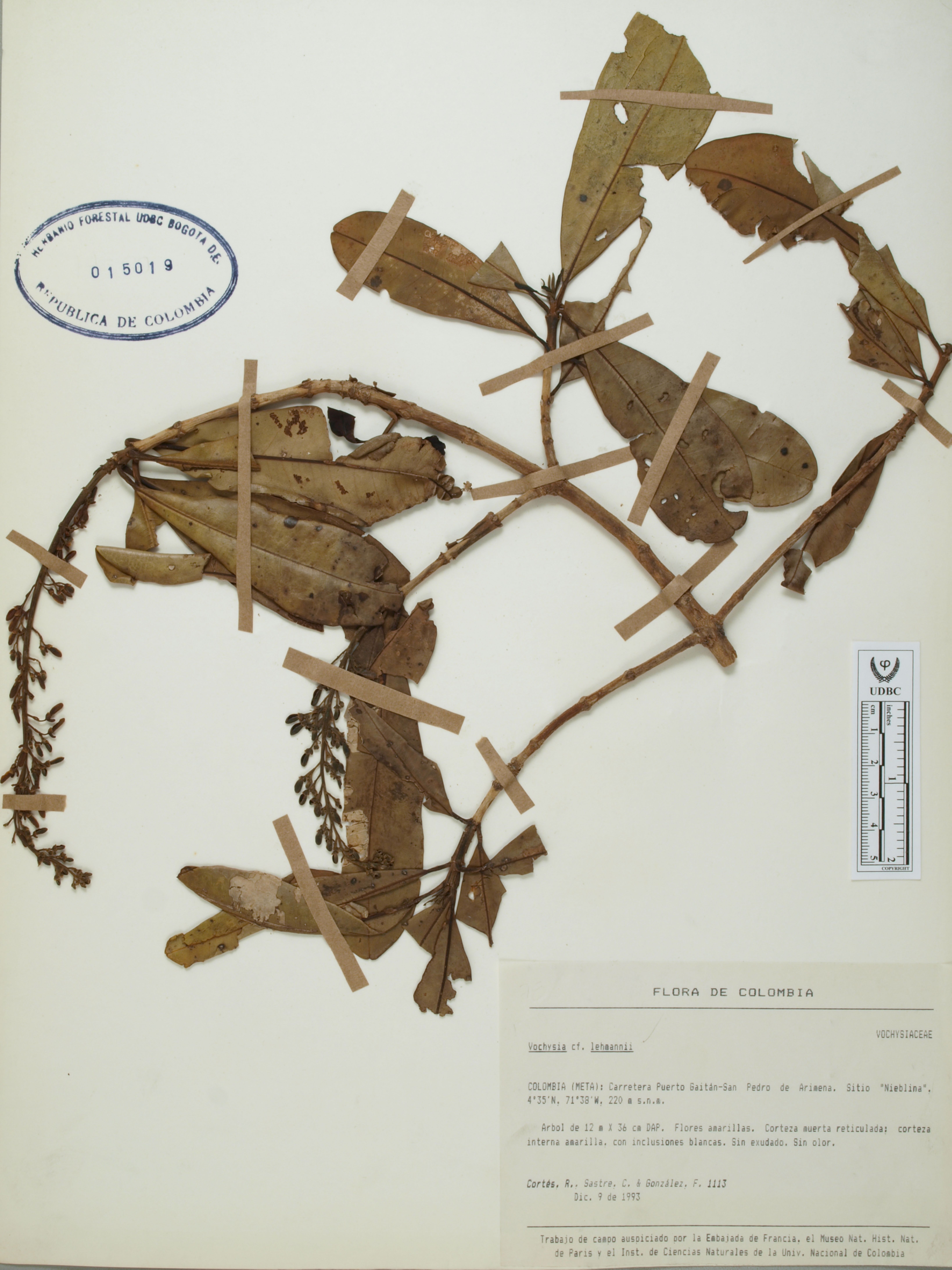 | dc.description | Fotografía del ejemplar Cortés-B., R. 1113, determinado como Vochysia lehmannii | |