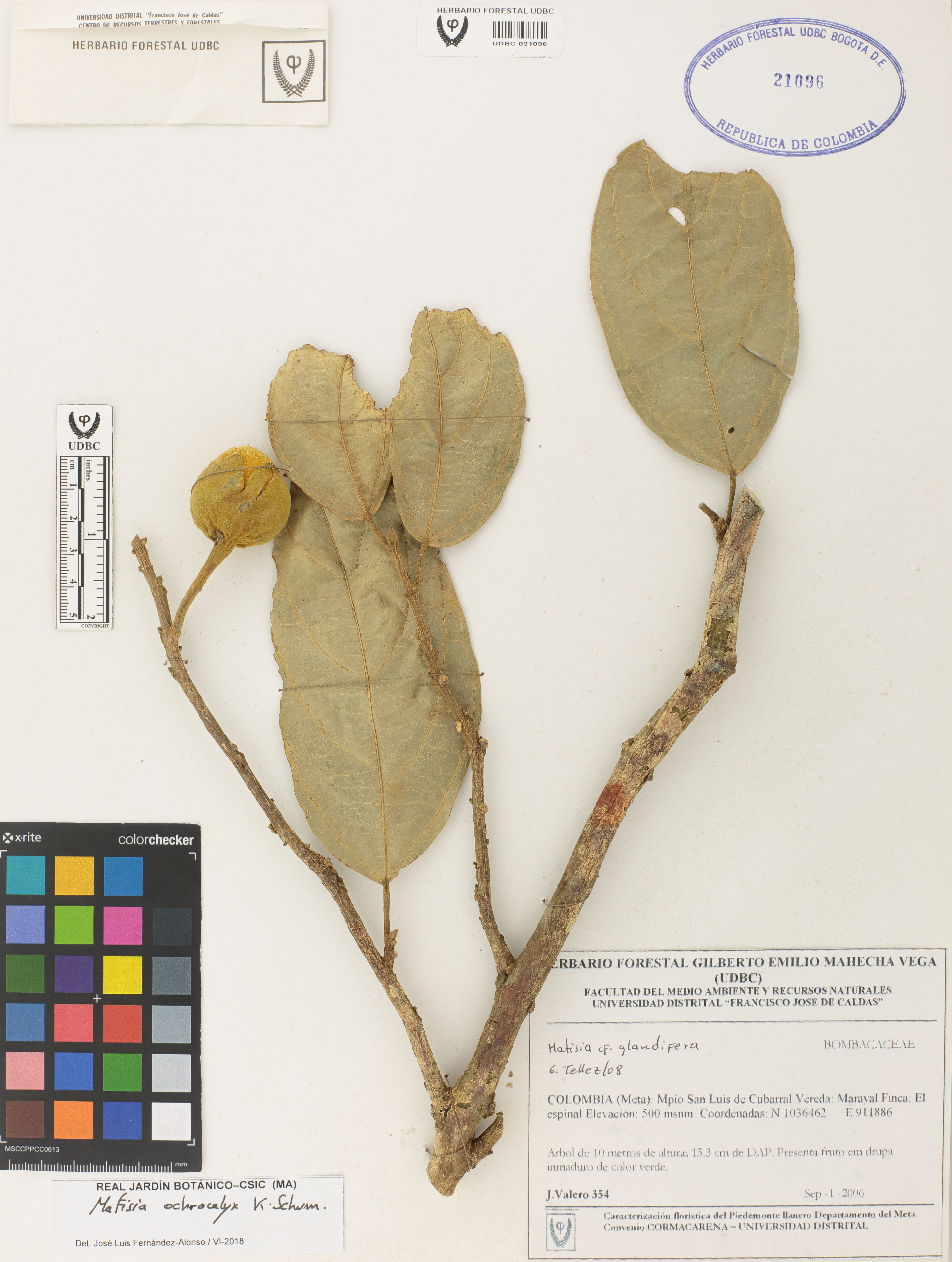 | dc.description | Fotografía del ejemplar Valero, J. 354, determinado como Matisia ochrocalyx en el año 2018 | |