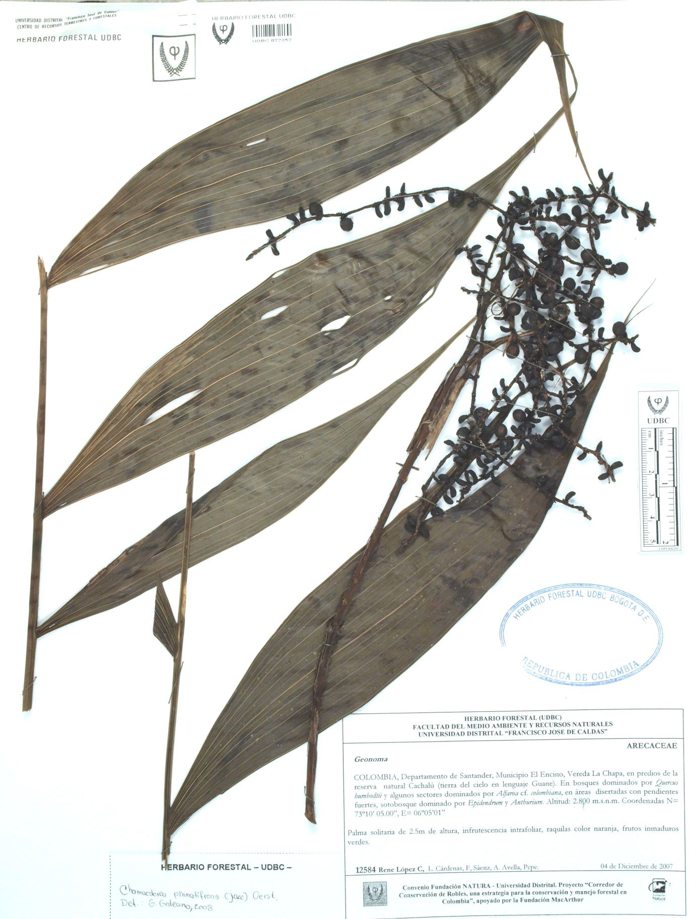 Fotografía del ejemplar López, R. 12584, determinado como Chamaedorea pinnatifrons en el año 2008