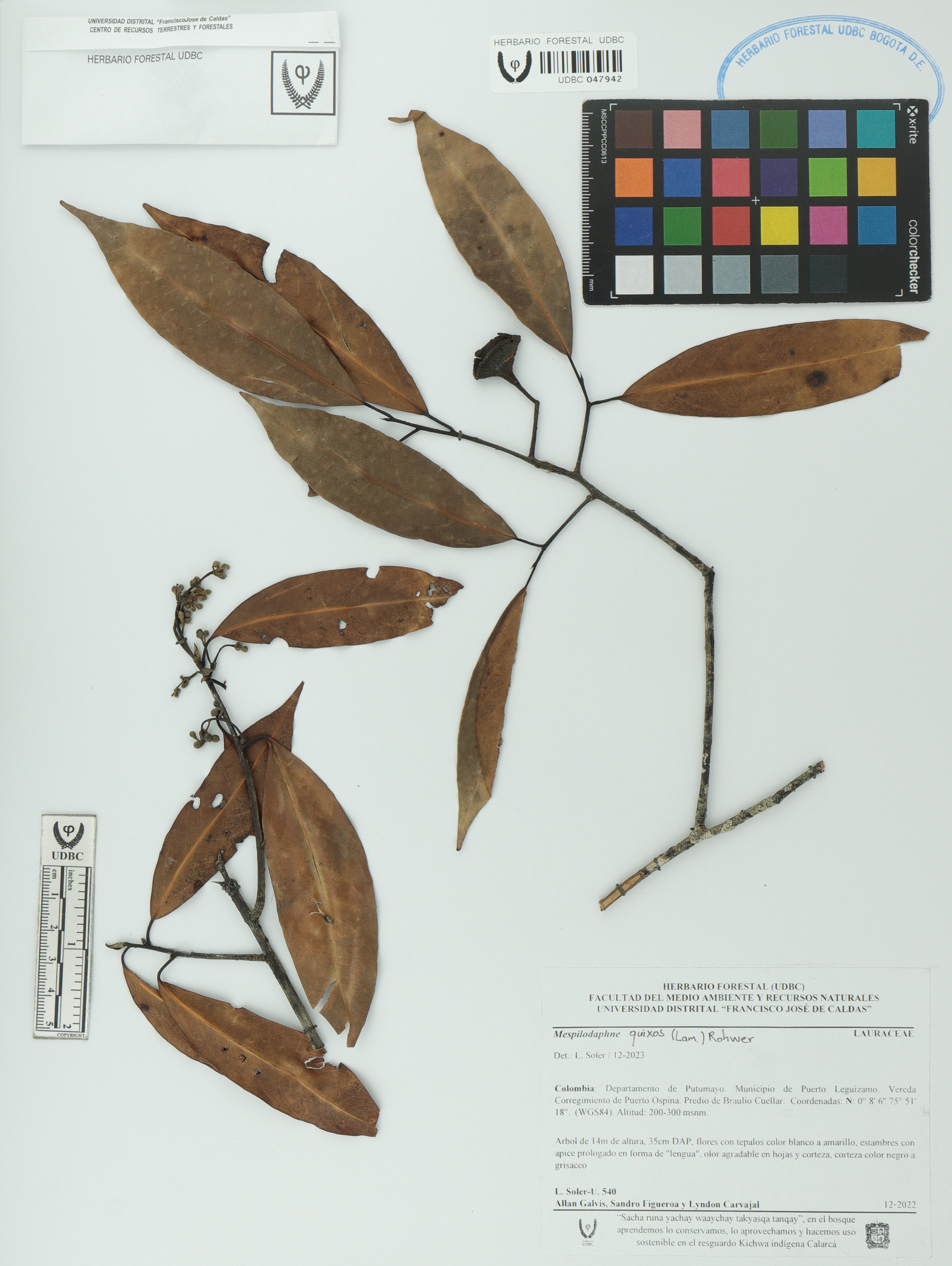 Fotografía del ejemplar Soler-U., L. 540, determinado como Mespilodaphne quixos en el año 2023