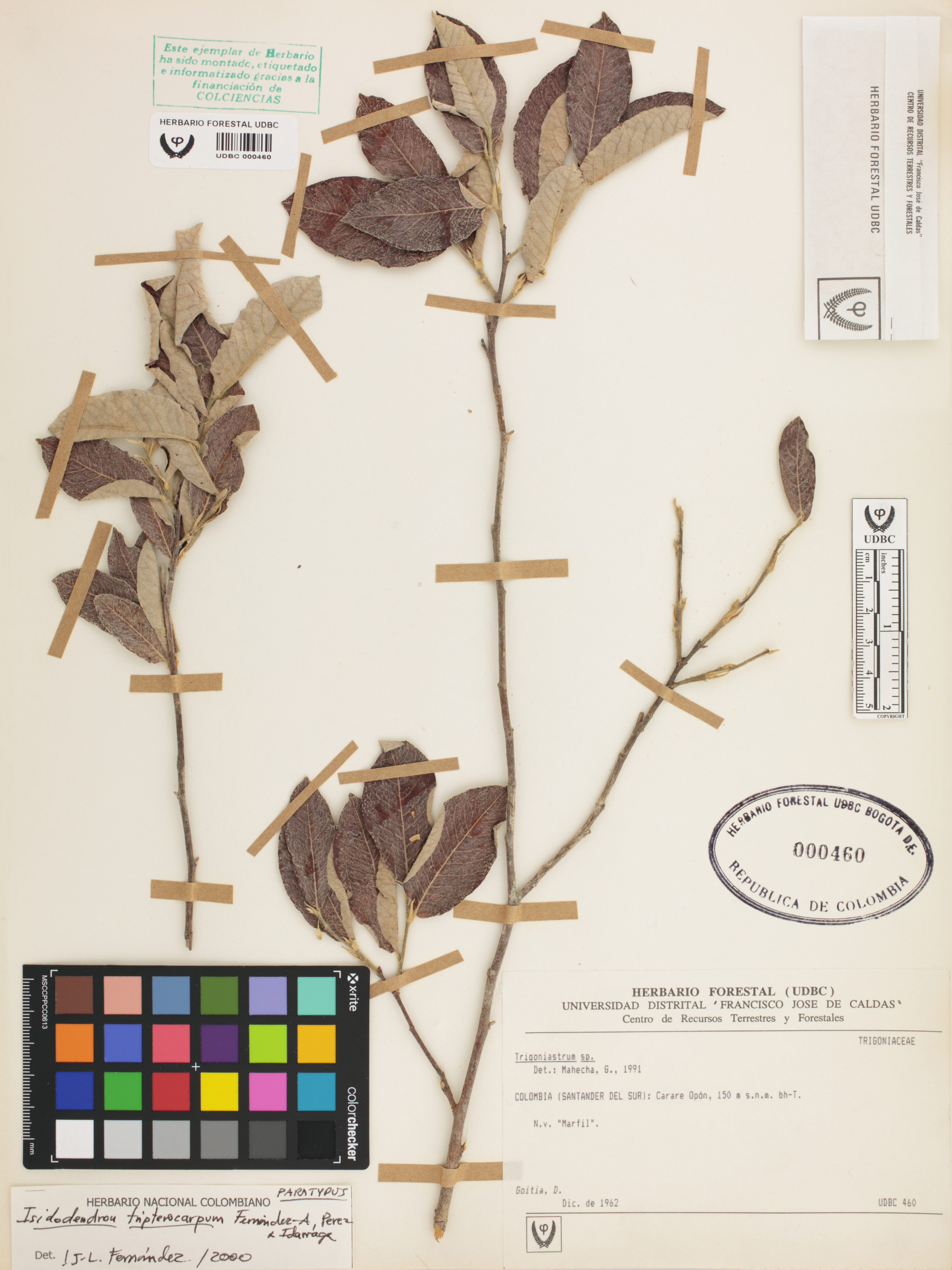 Fotografía del ejemplar Goitia, D., Paratipo de Isidodendron tripterocarpum