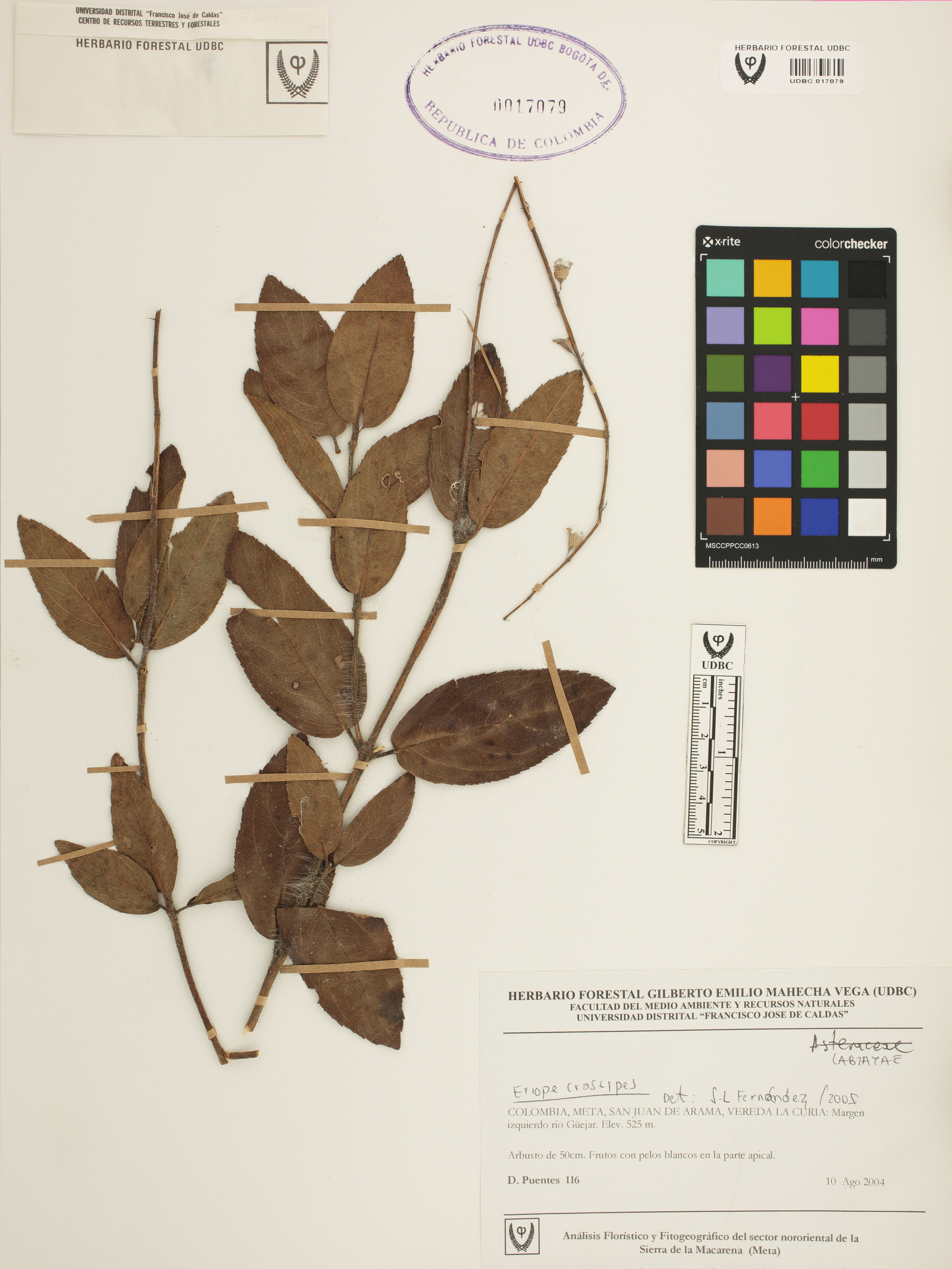 Fotografía del ejemplar Puentes, D. 116, determinado como Eriope crassipes en el año 2005