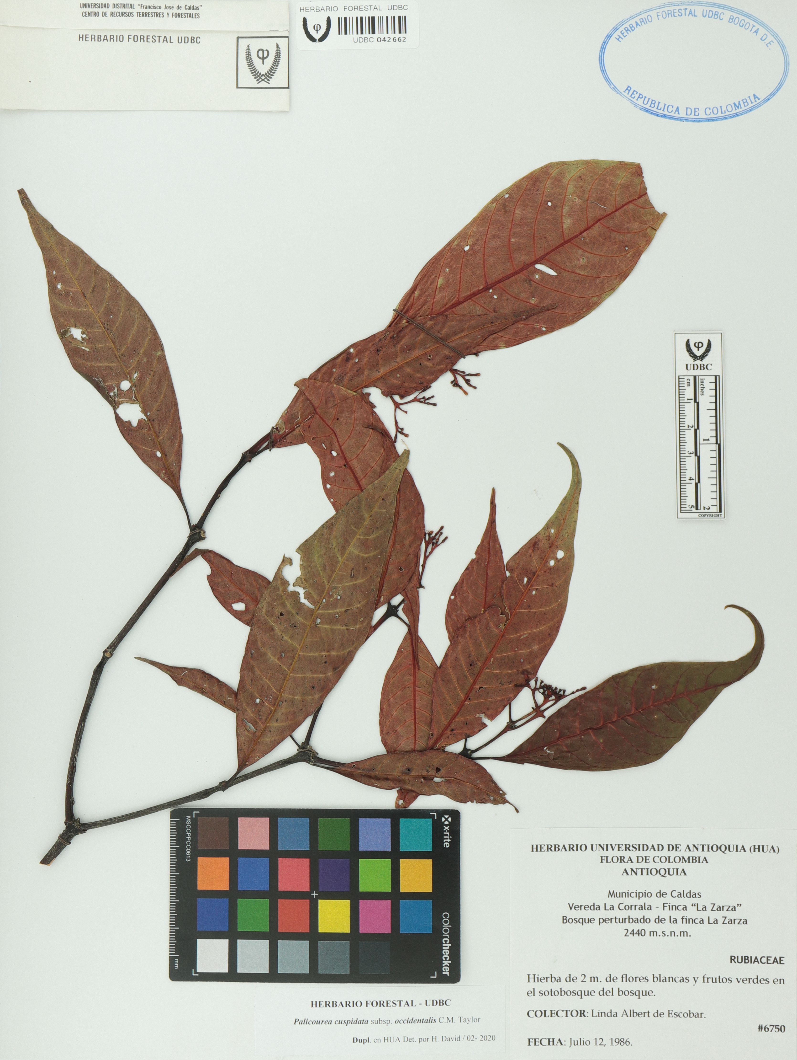 | dc.description | Fotografía del ejemplar Albert de Escobar, L. 6750, determinado como Palicourea cuspidata subsp. occidentalis en el año 2020 | |