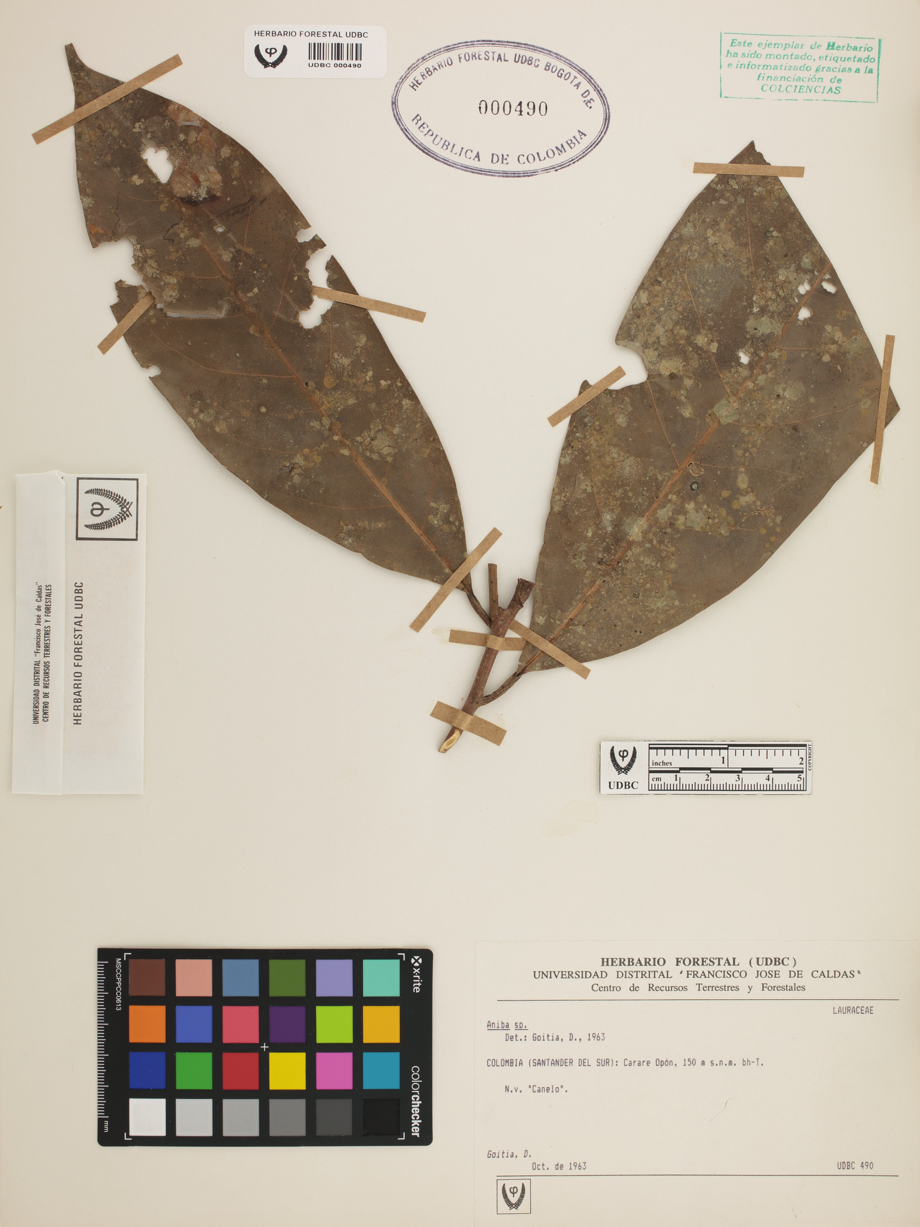 Fotografía del ejemplar Goitia, D., determinado como Aniba sp. en el año 1963