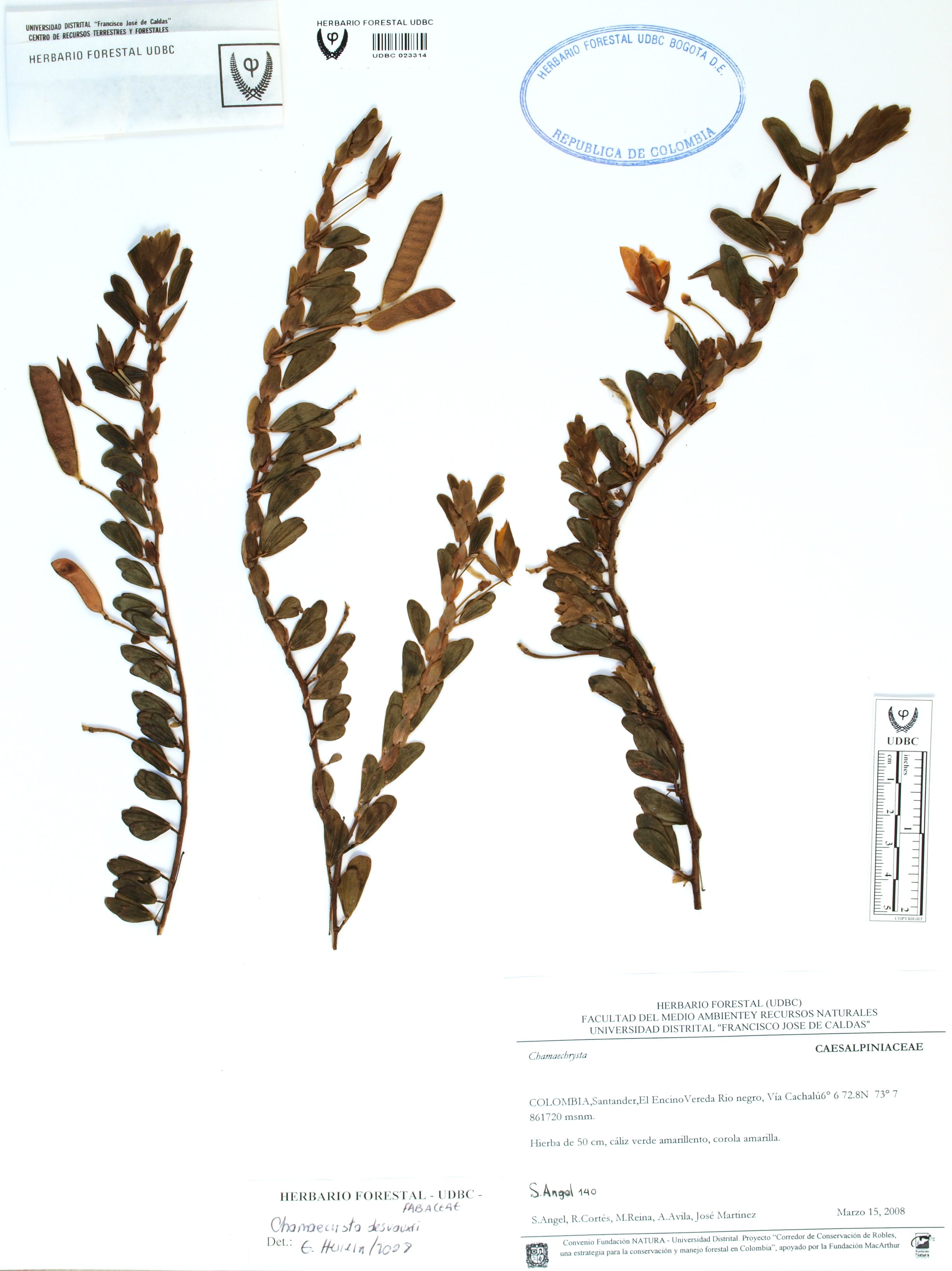 Fotografía del ejemplar Ángel, S. 140, determinado como Chamaecrista desvauxii en el año 2008
