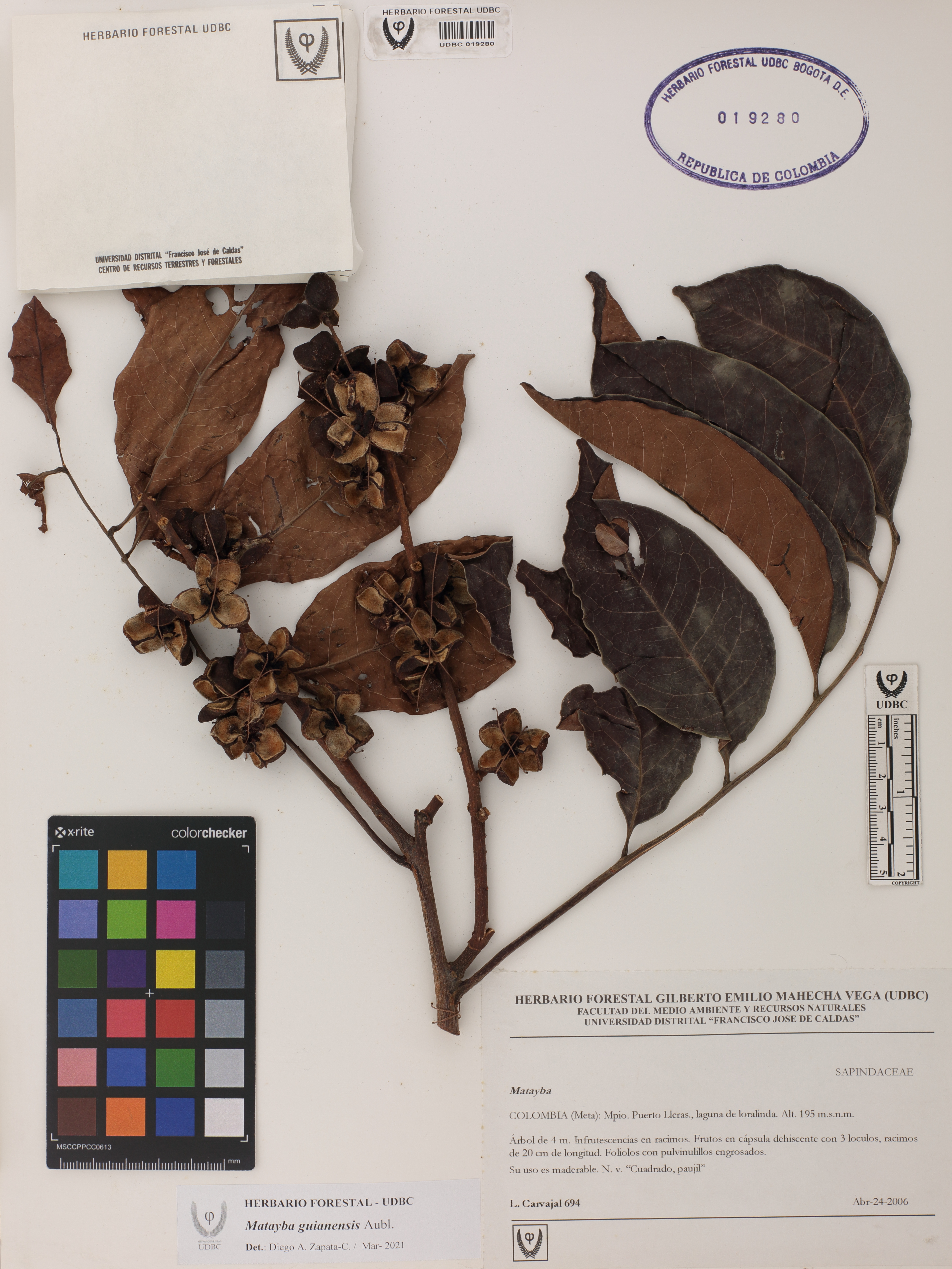 Fotografía del ejemplar Carvajal, L. 694, determinado como Matayba sp.