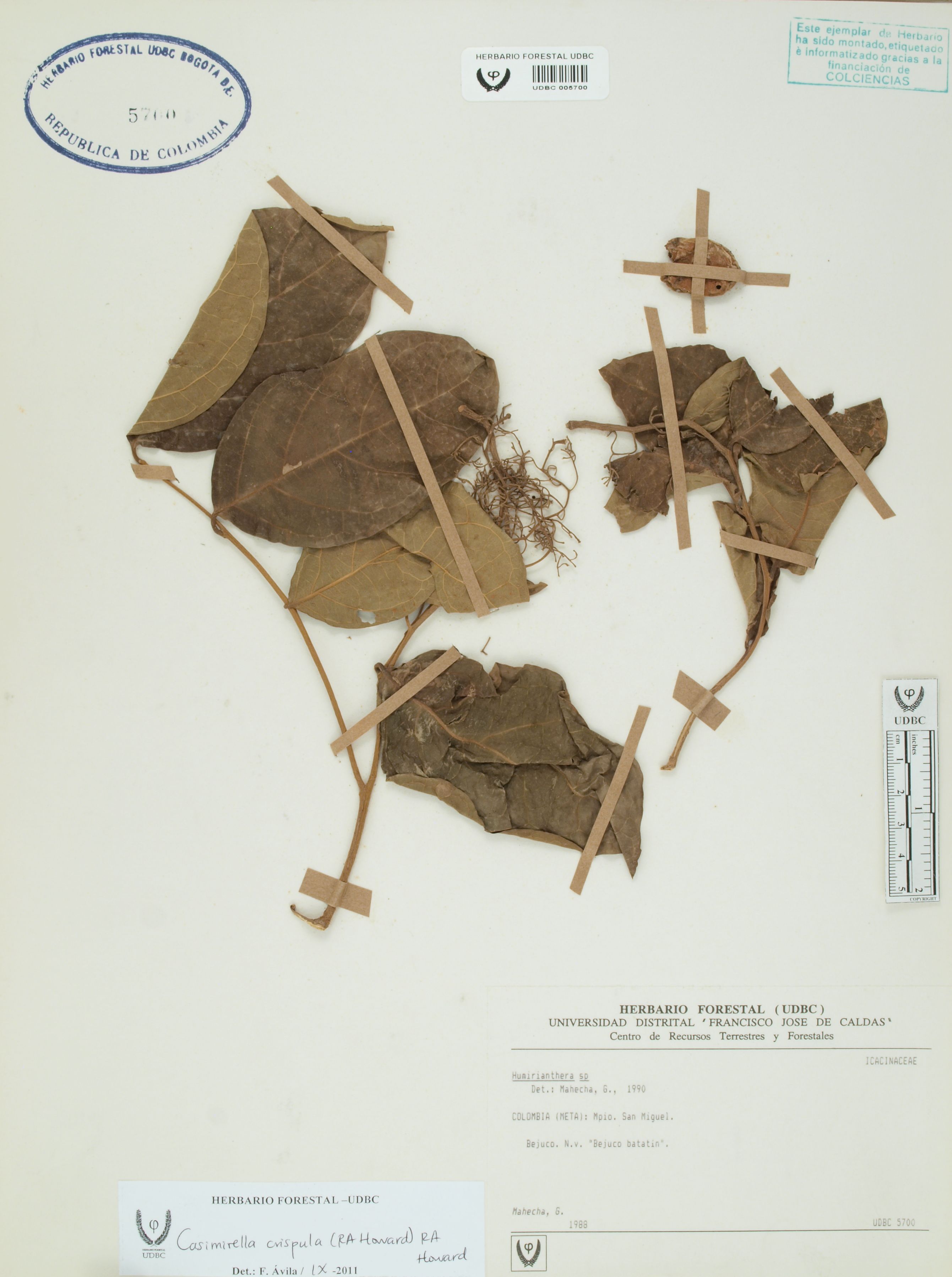Fotografía del ejemplar Mahecha, G., determinado como Casimirella crispula en el año 2011
