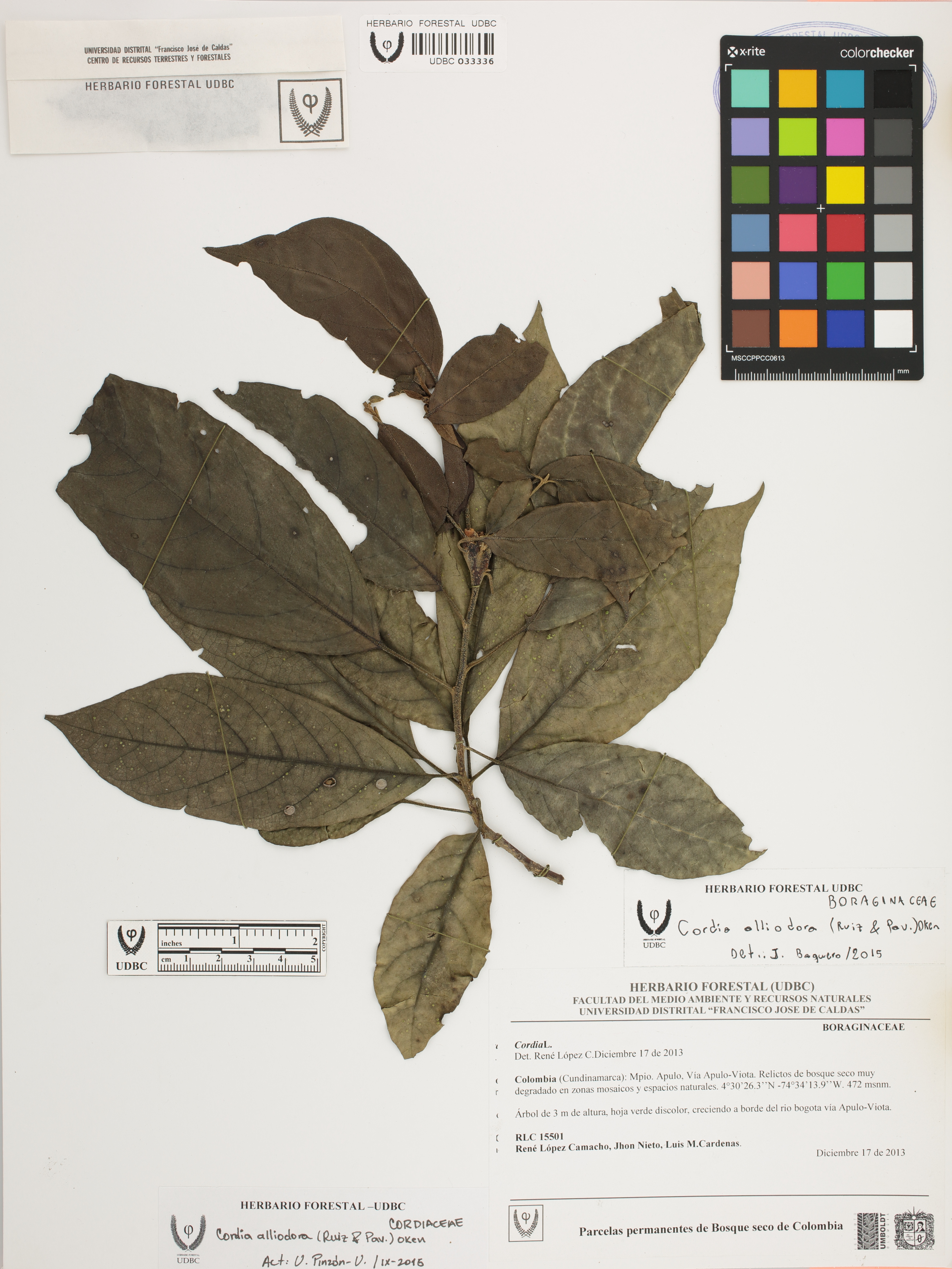 Fotografía del ejemplar López, R. 15501, determinado como Cordia alliodora en el año 2015