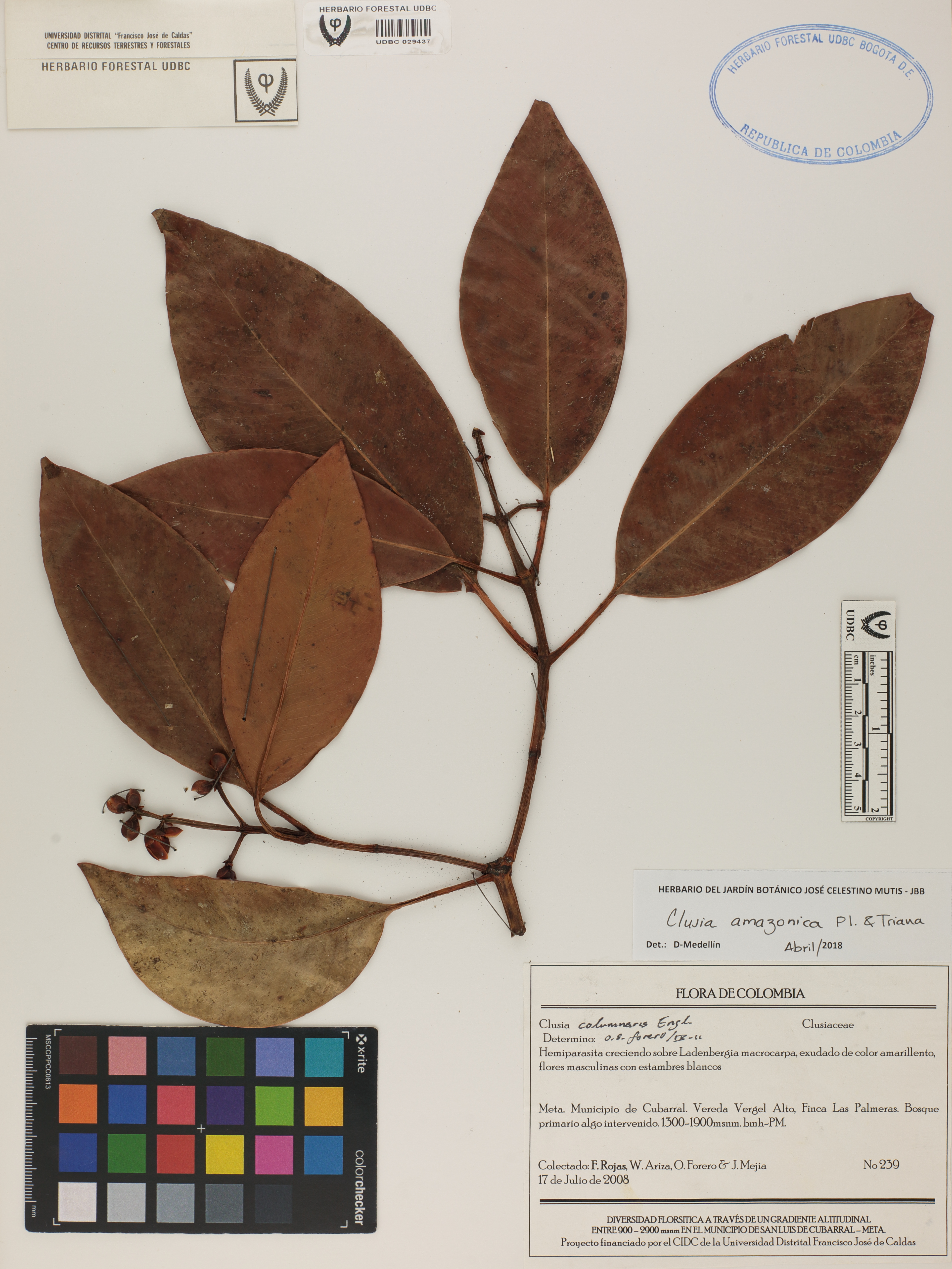 | dc.description | Fotografía del ejemplar Rojas, F. 239, determinado como Clusia amazonica en el año 2018 | |
