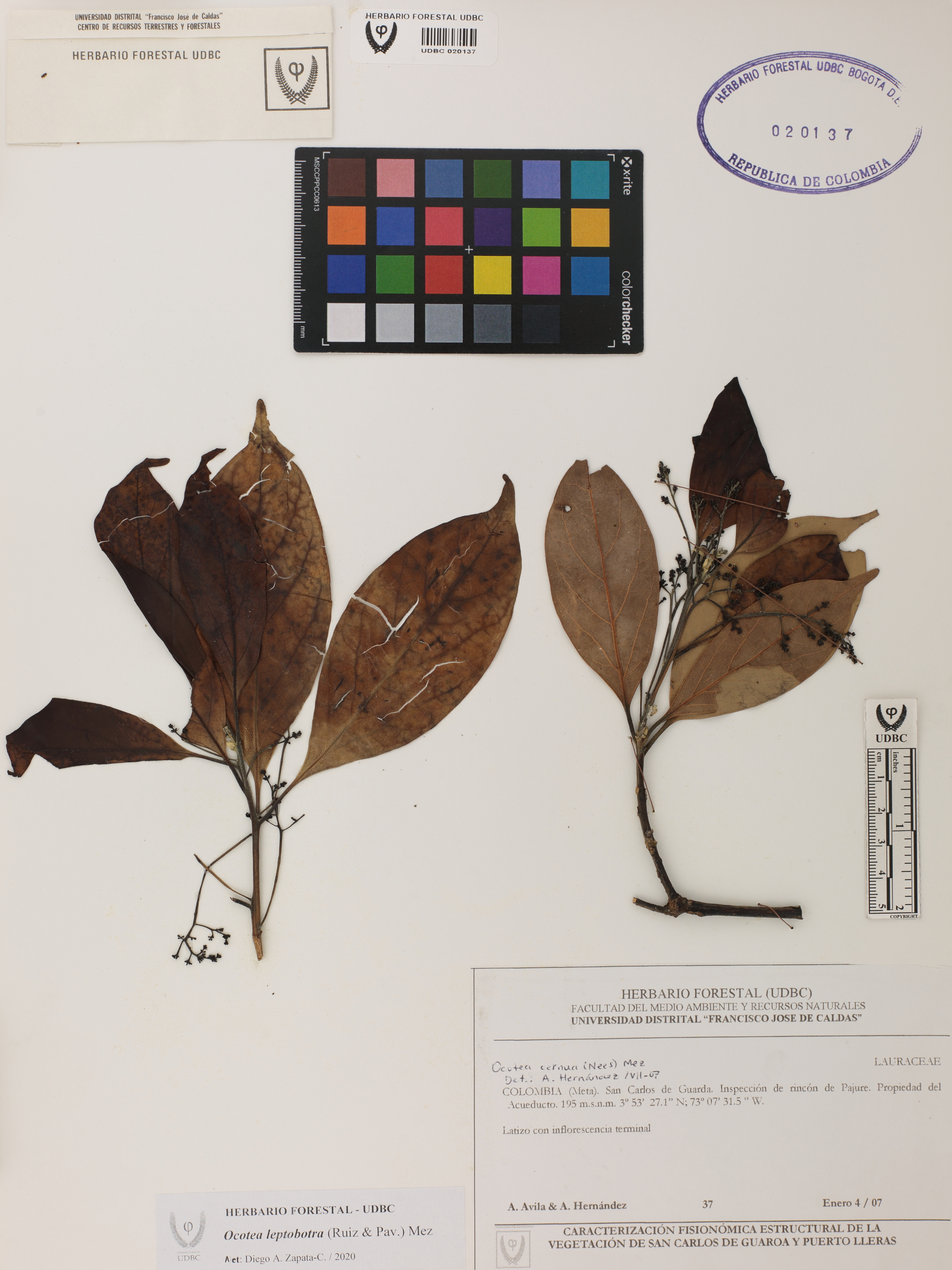 | dc.description | Fotografía del ejemplar Ávila, A. 37, determinado como Ocotea bofo en el año 2020 | |