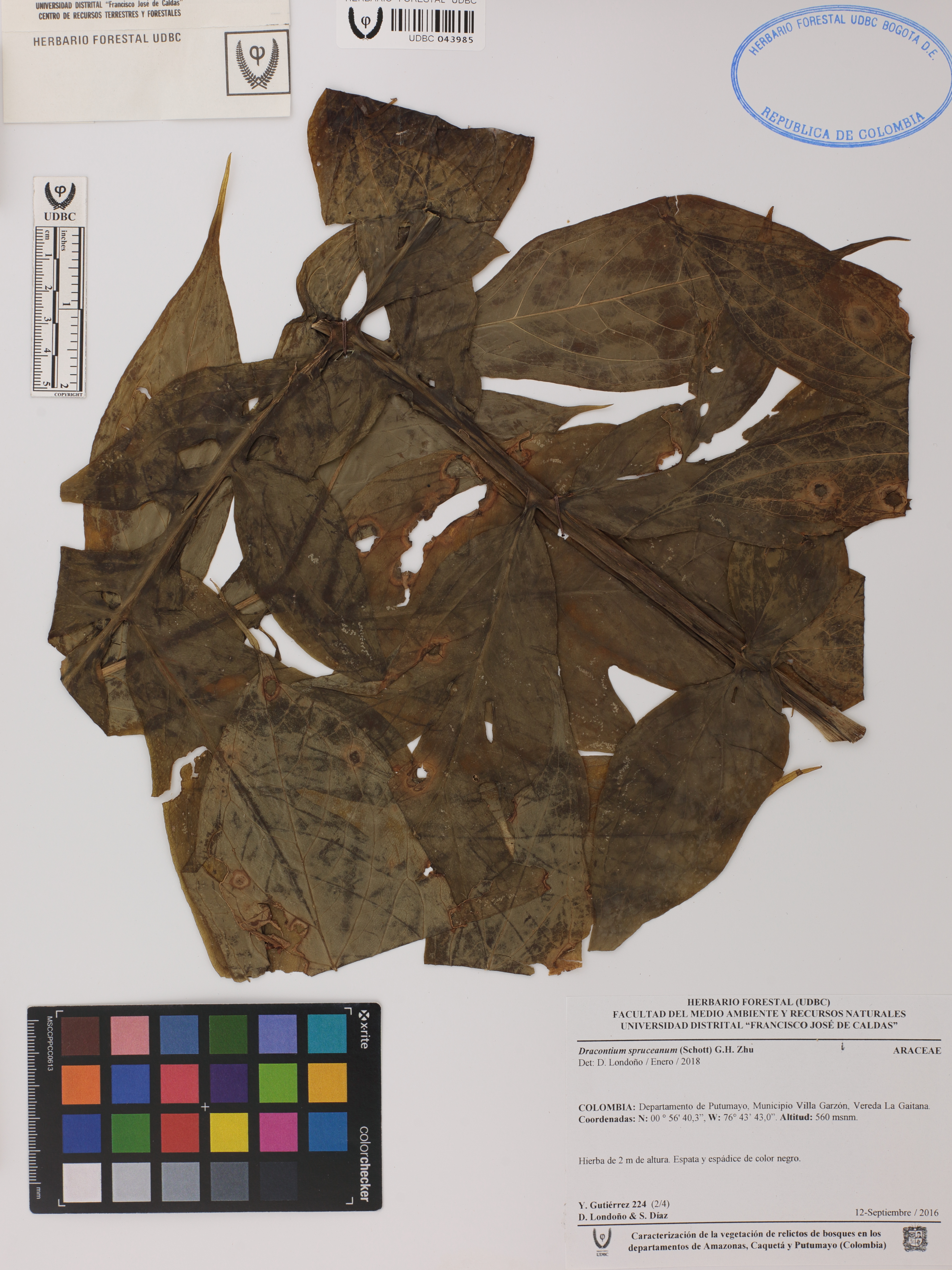 | dc.description | Fotografía del ejemplar Gutiérrez, Y. 224, determinado como Dracontium spruceanum en el año 2018 | |