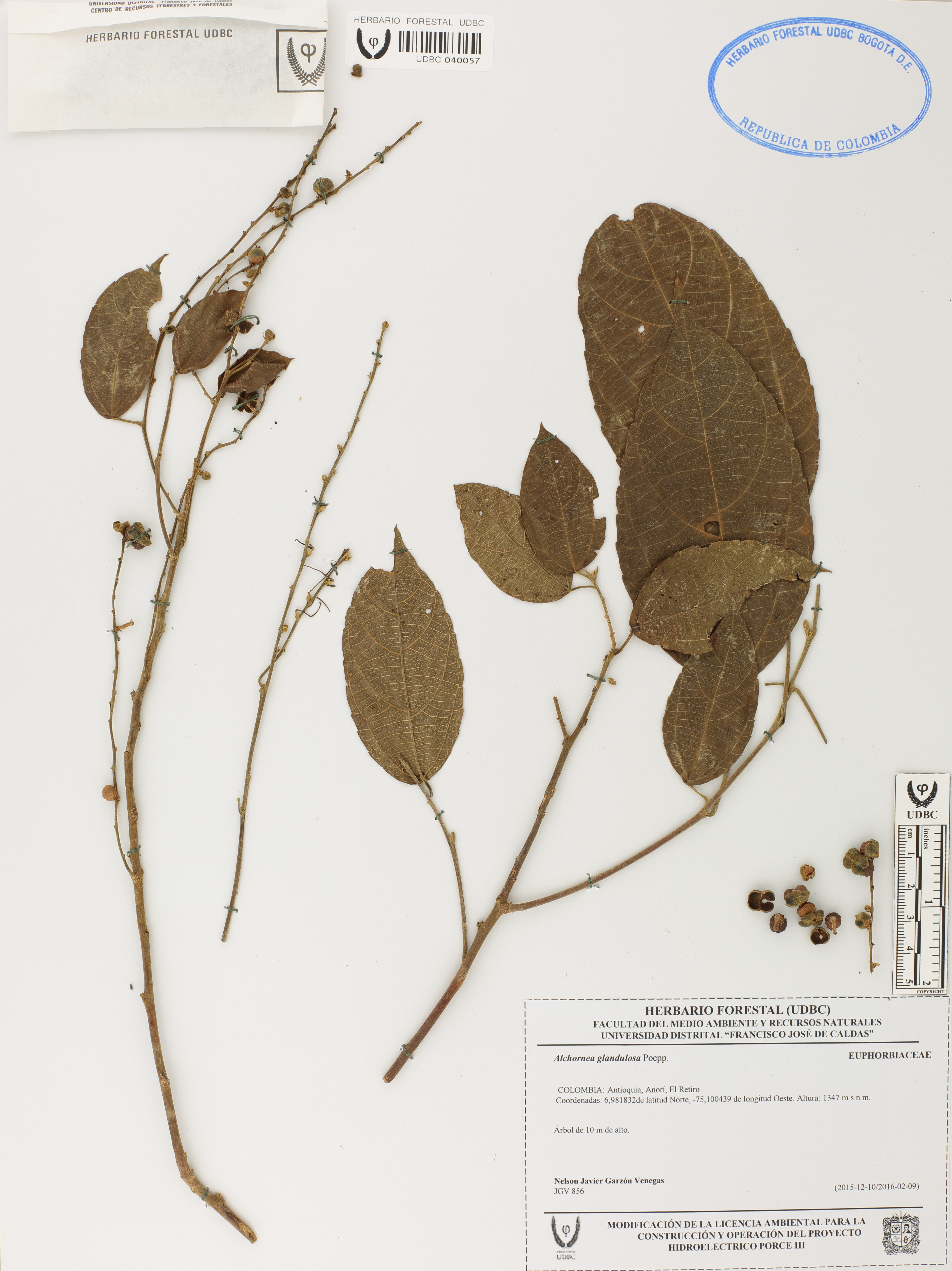 | dc.description | Fotografía del ejemplar Garzón, N. 856, determinado como Alchornea glandulosa | |