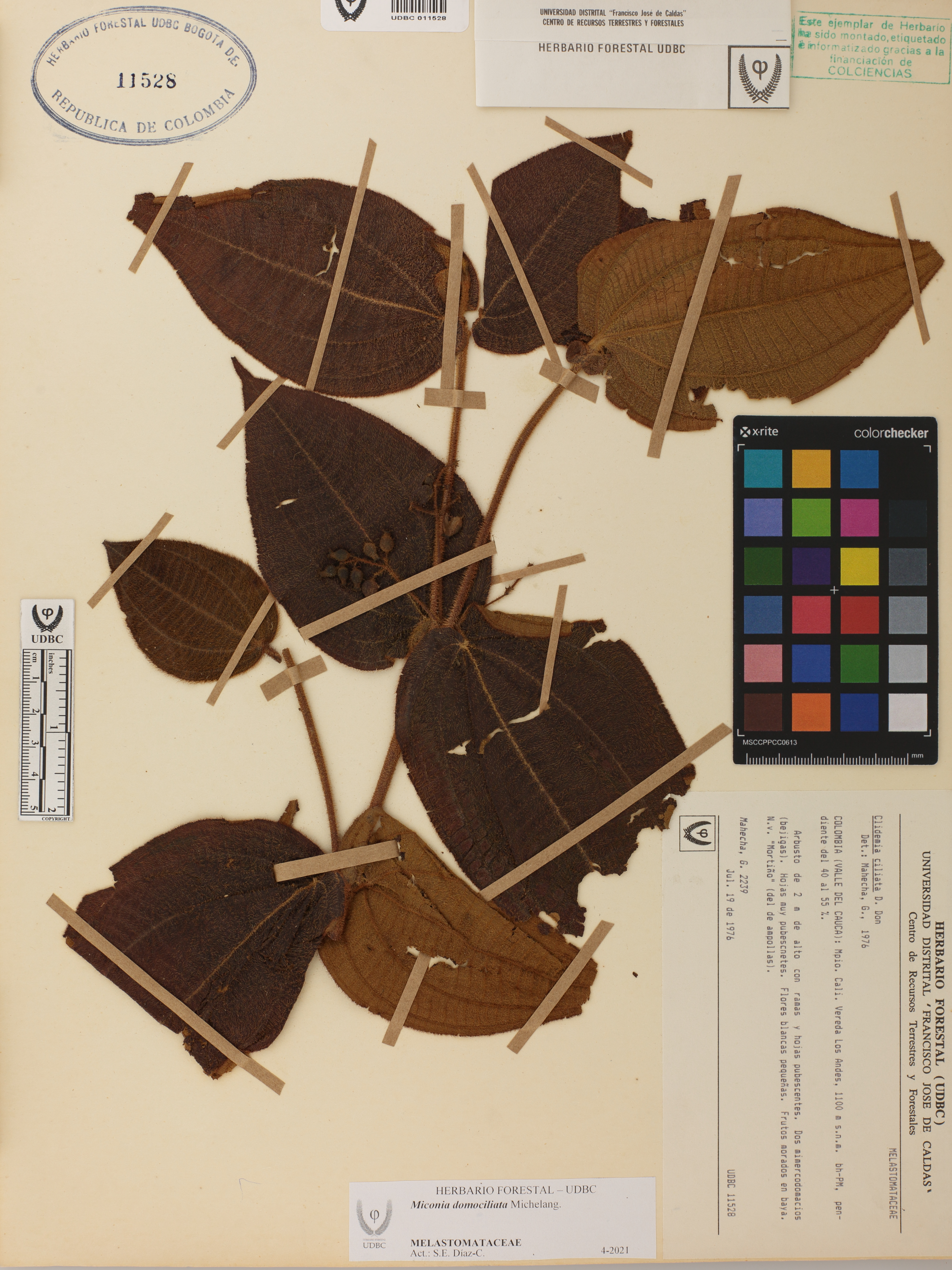 Fotografía del ejemplar Mahecha, G. 2239, determinado como Miconia domociliata en el año 1976