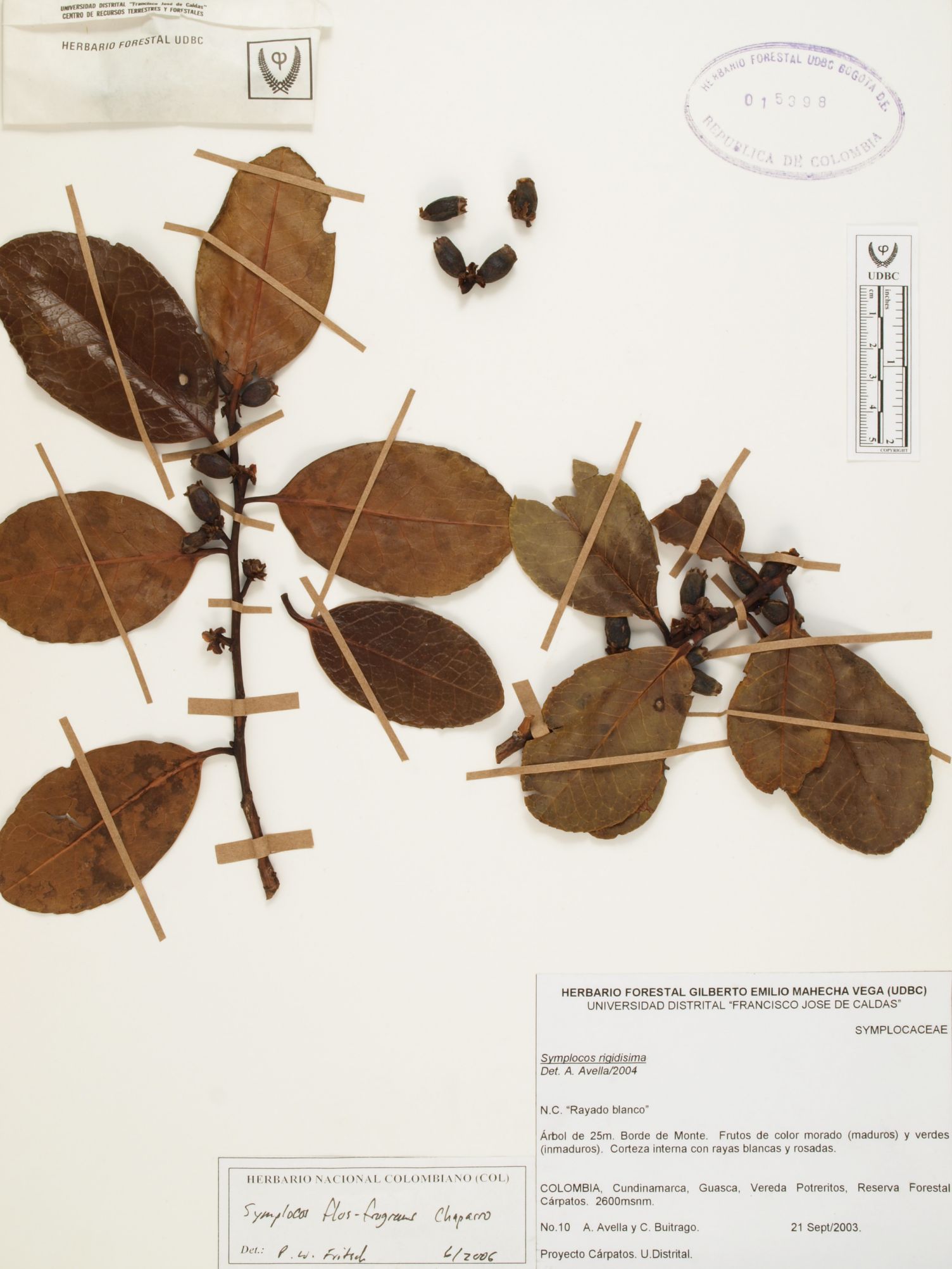 | dc.description | Fotografía del ejemplar Avella, A. 10, determinado como Symplocos flosfragrans en el año 2006 | |