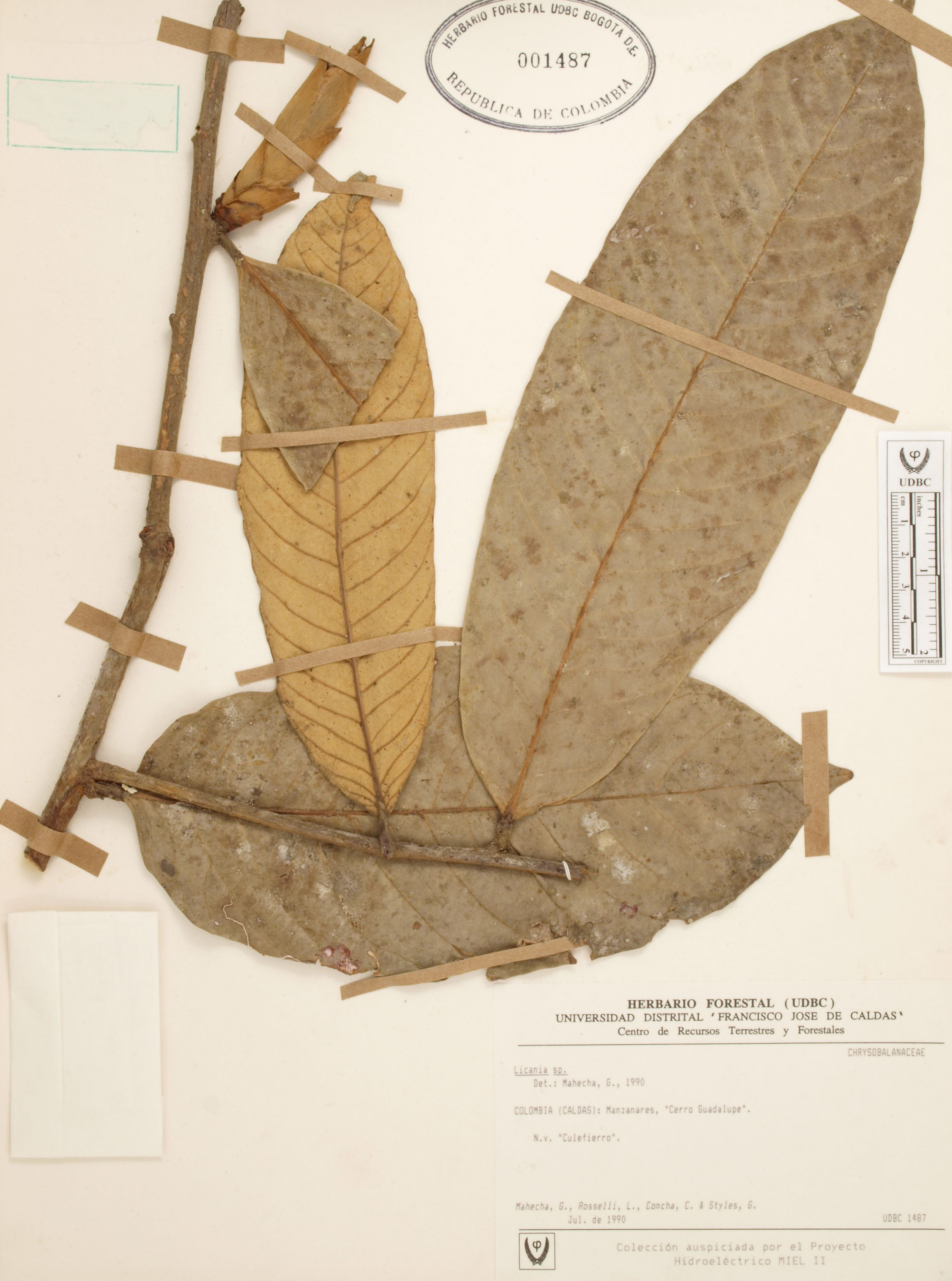 Fotografía del ejemplar Mahecha, G., determinado como Licania sp. en el año 1990