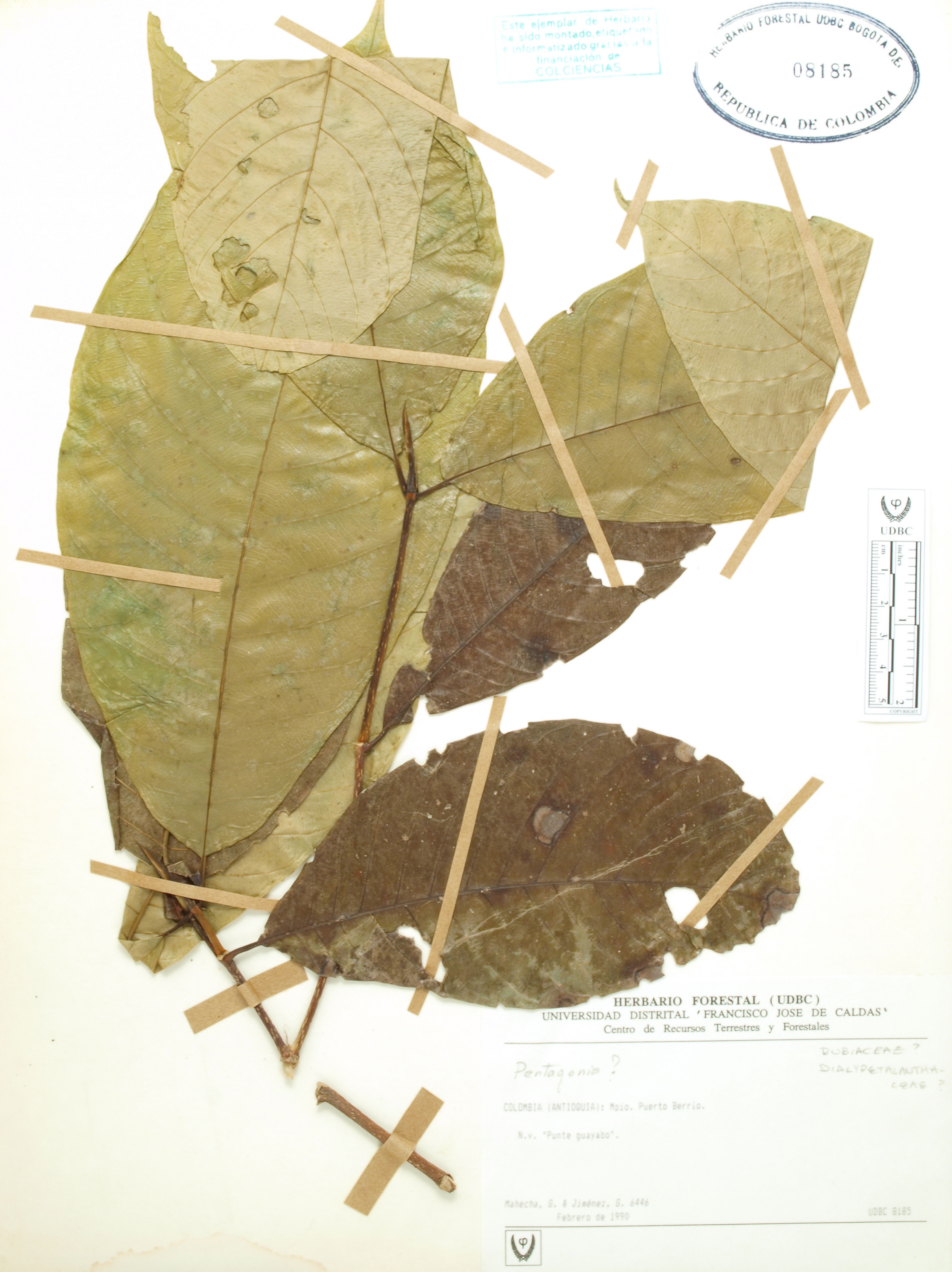Fotografía del ejemplar Mahecha, G. 6446, determinado como Pentagonia sp.
