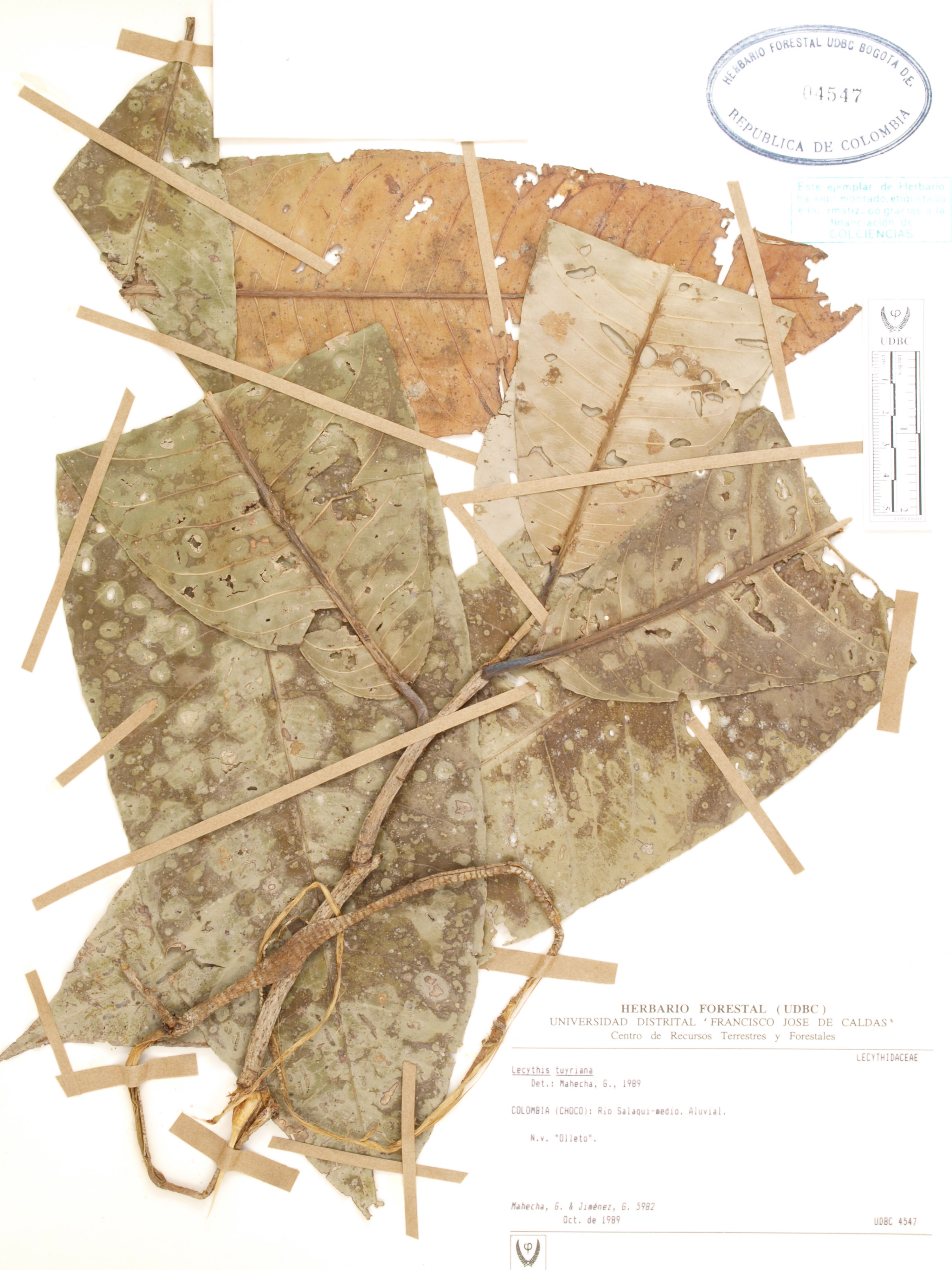 | dc.description | Fotografía del ejemplar Mahecha, G. 5982, determinado como Lecythis tuyrana en el año 1989 | |