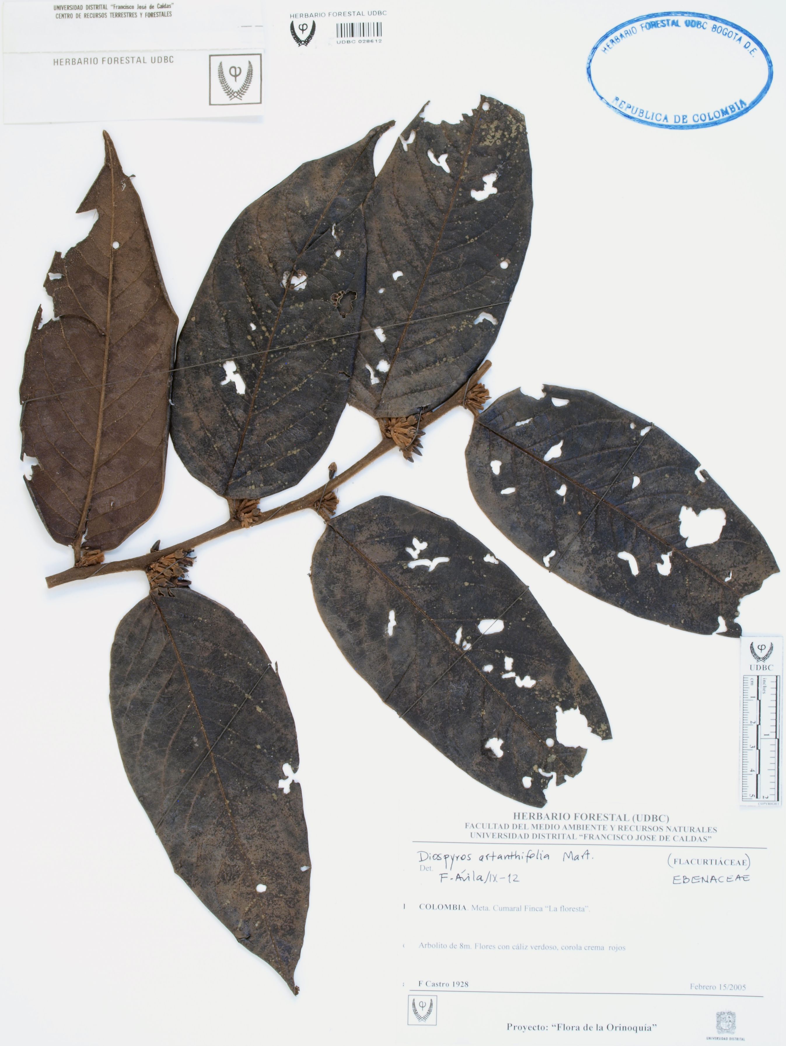 Fotografía del ejemplar Castro, F. 1928, determinado como Diospyros artanthifolia en el año 2012
