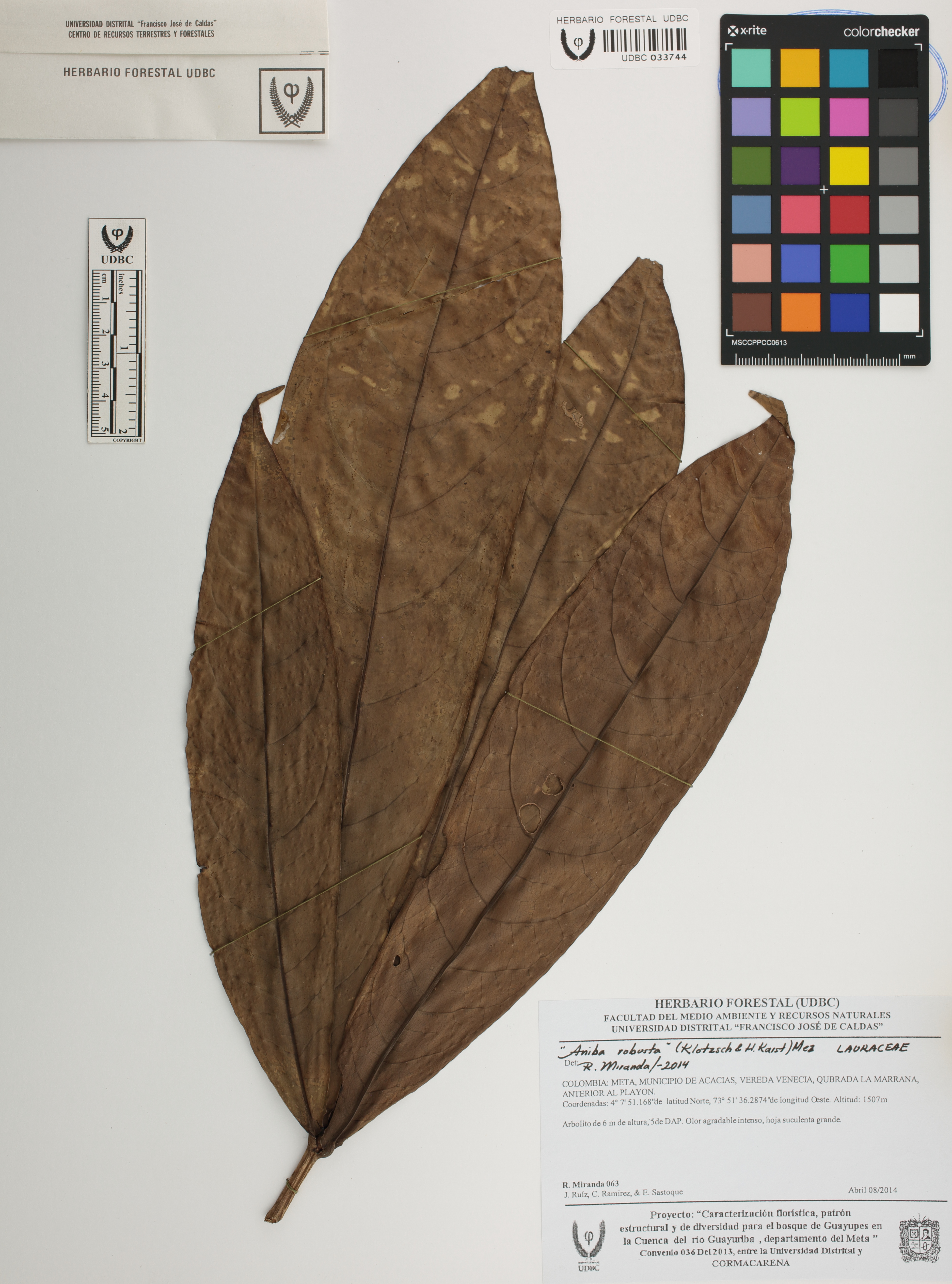 Fotografía del ejemplar Miranda, R. 63, determinado como Aniba robusta en el año 2014