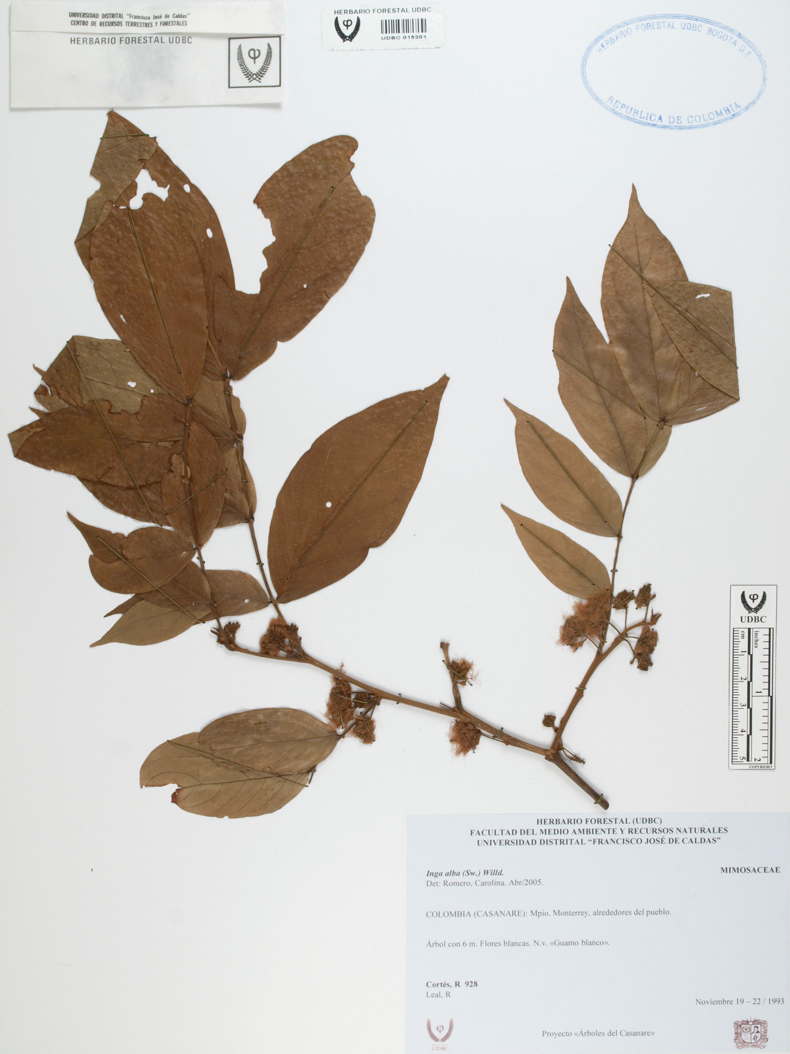 Fotografía del ejemplar Cortés-B., R. 928, determinado como Inga alba en el año 2005