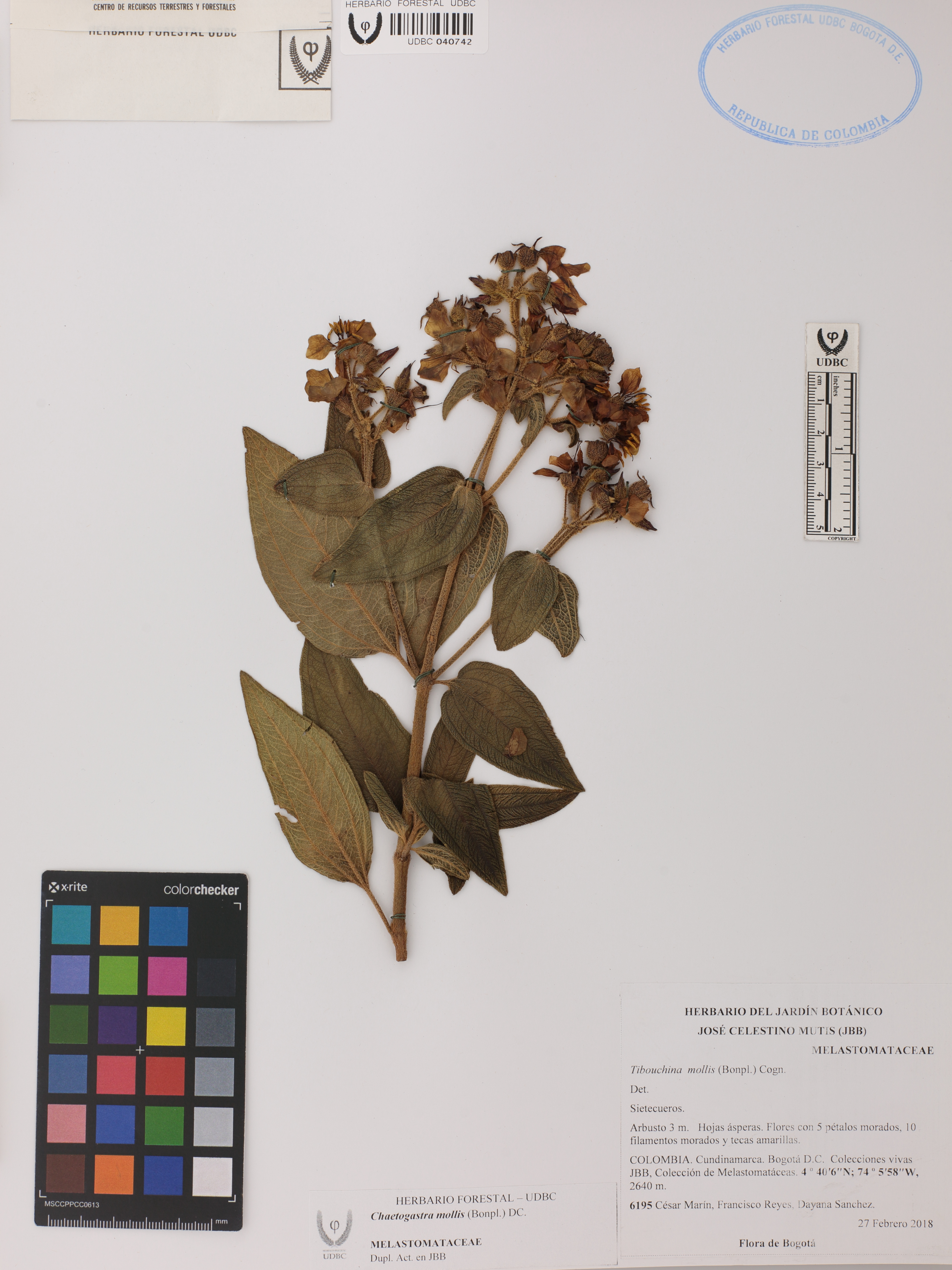 Fotografía del ejemplar Marín, C. 6195, determinado como Chaetogastra mollis