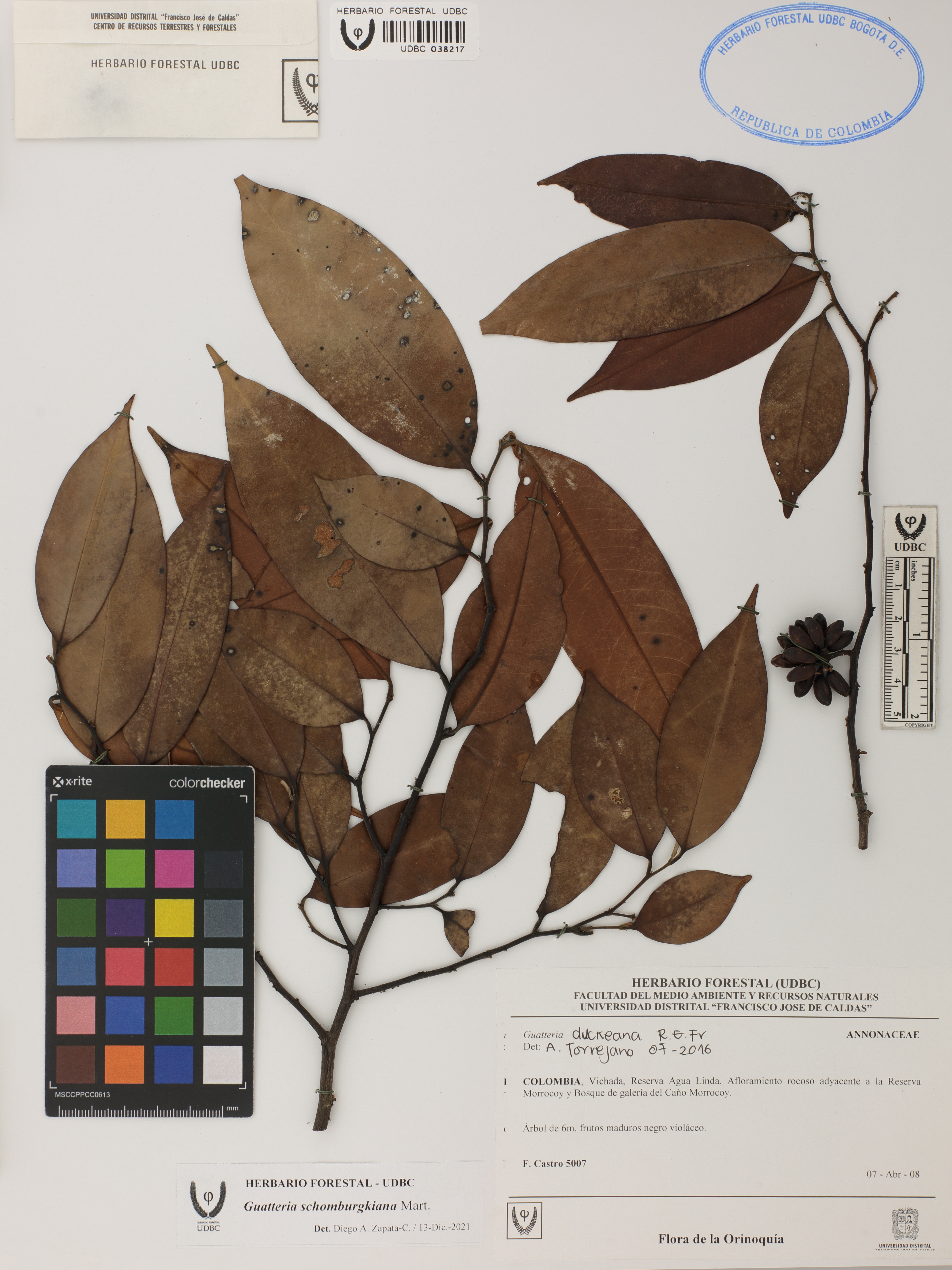 Fotografía del ejemplar Castro, F. 5007, determinado como Guatteria schomburgkiana en el año 2021