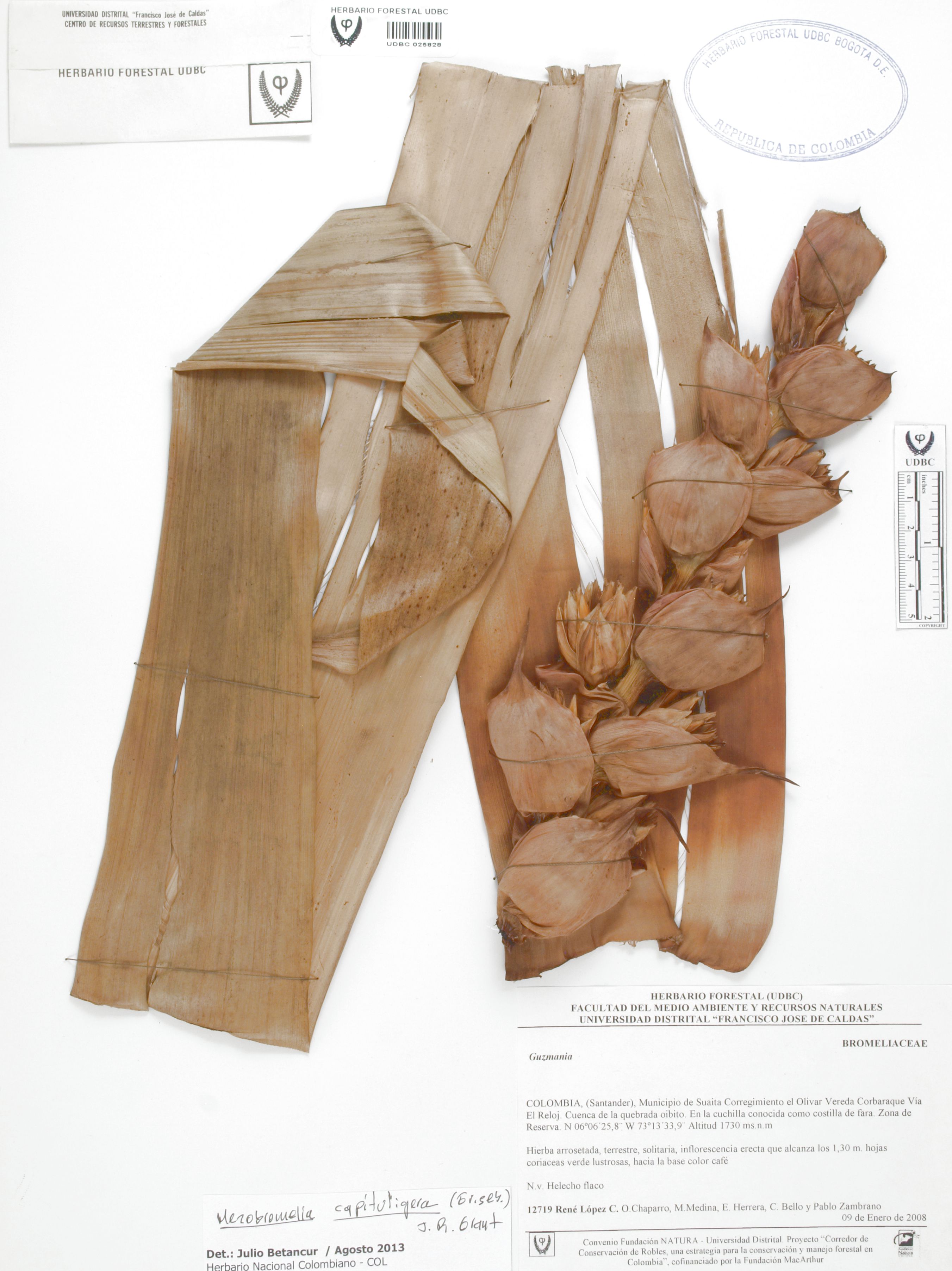 Fotografía del ejemplar López, R. 12719, determinado como Mezobromelia capituligera en el año 2013