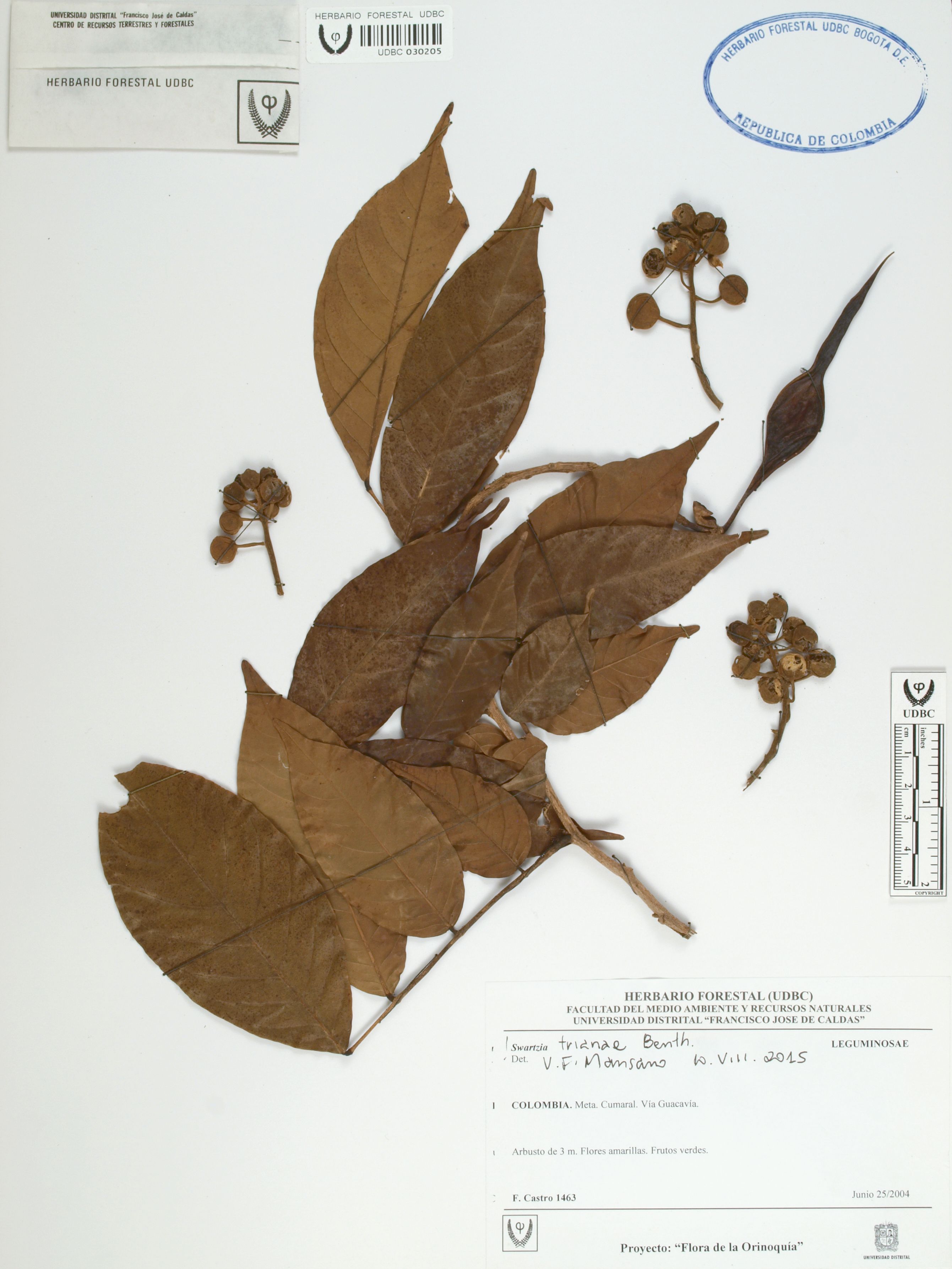 Fotografía del ejemplar Castro, F. 1463, determinado como Swartzia trianae en el año 2015