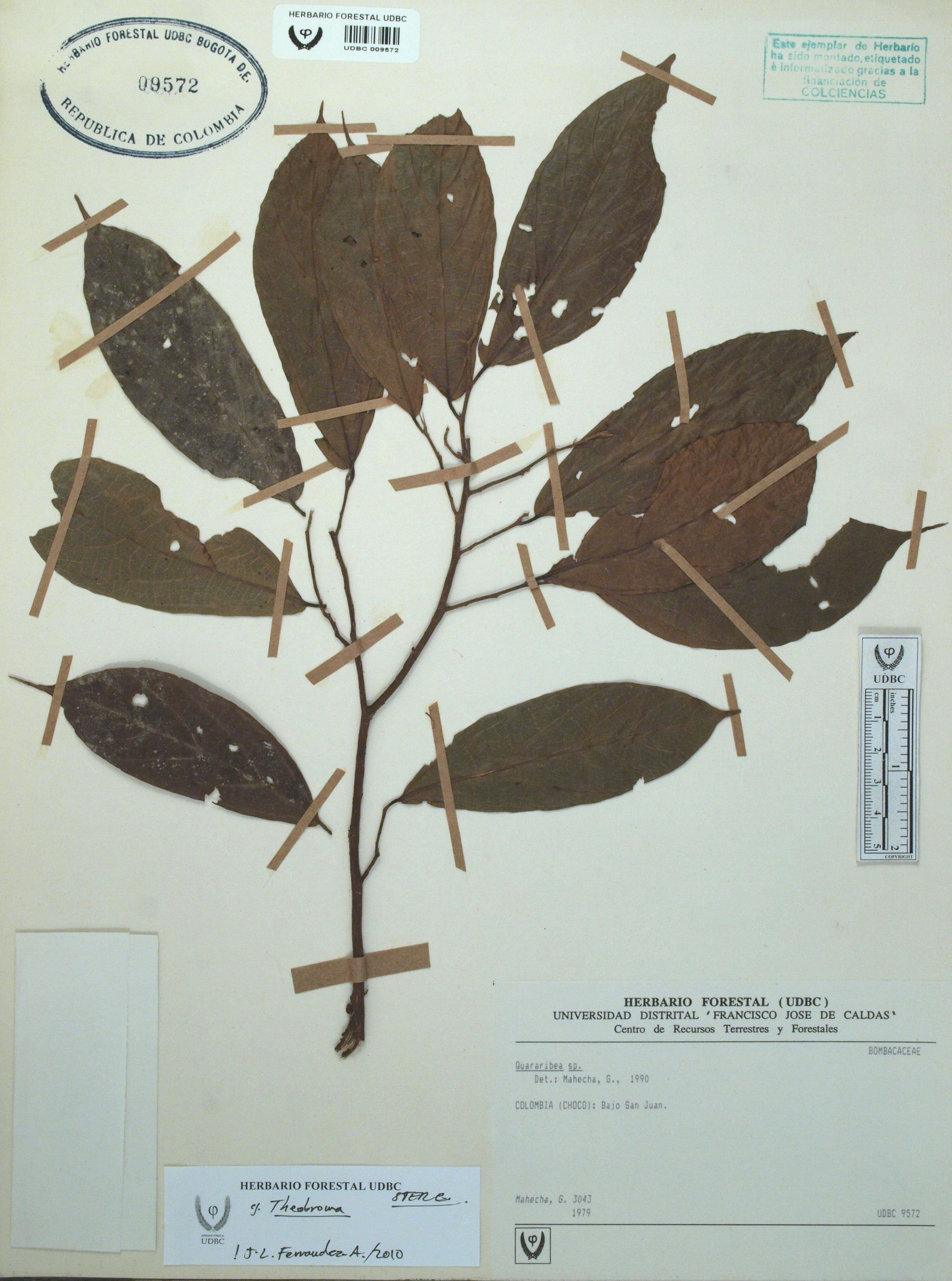 Fotografía del ejemplar Mahecha, G. 3043, determinado como Theobroma sp. en el año 2010