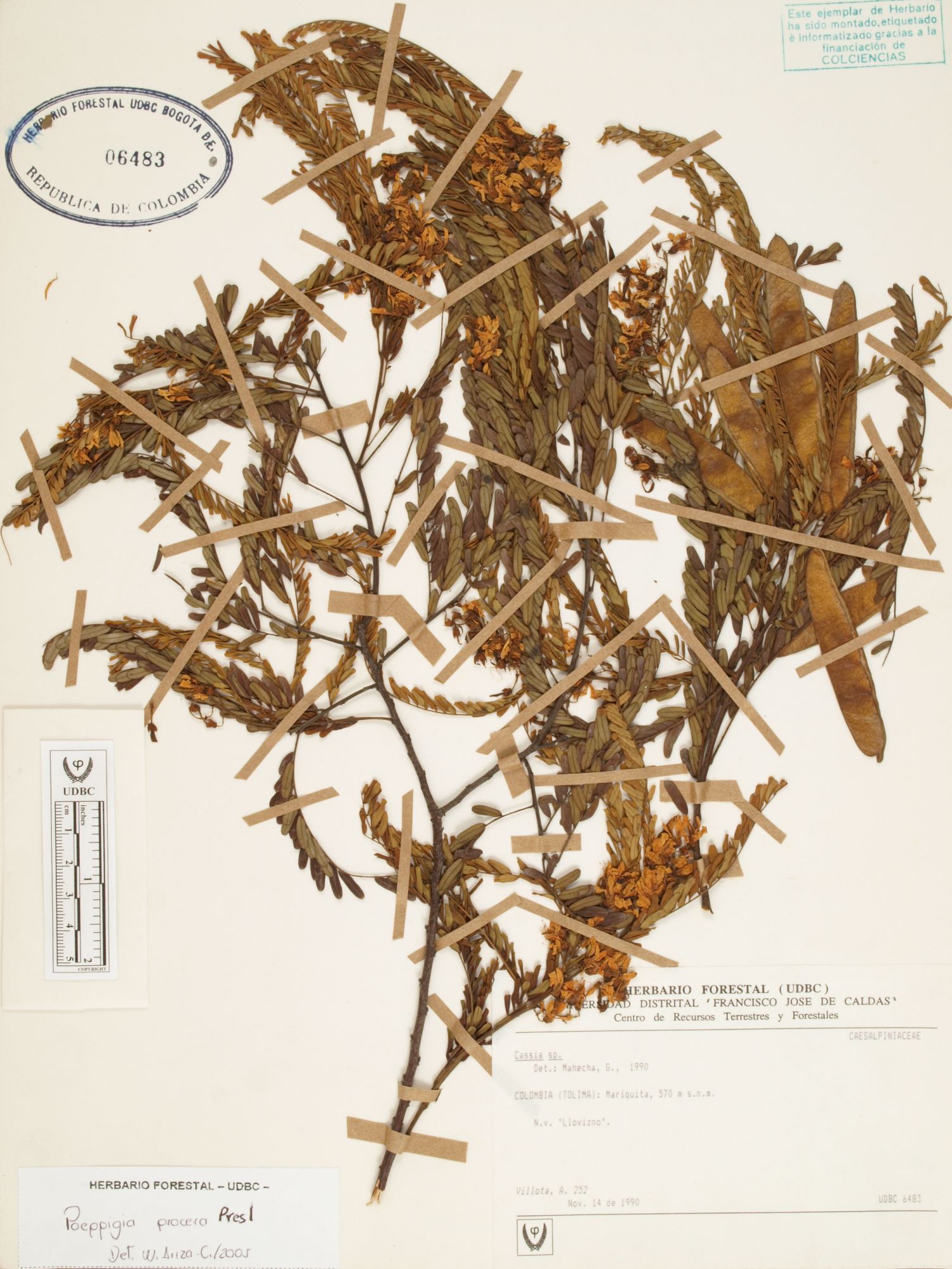 Fotografía del ejemplar Villota, A. 252, determinado como Poeppigia procera en el año 2005