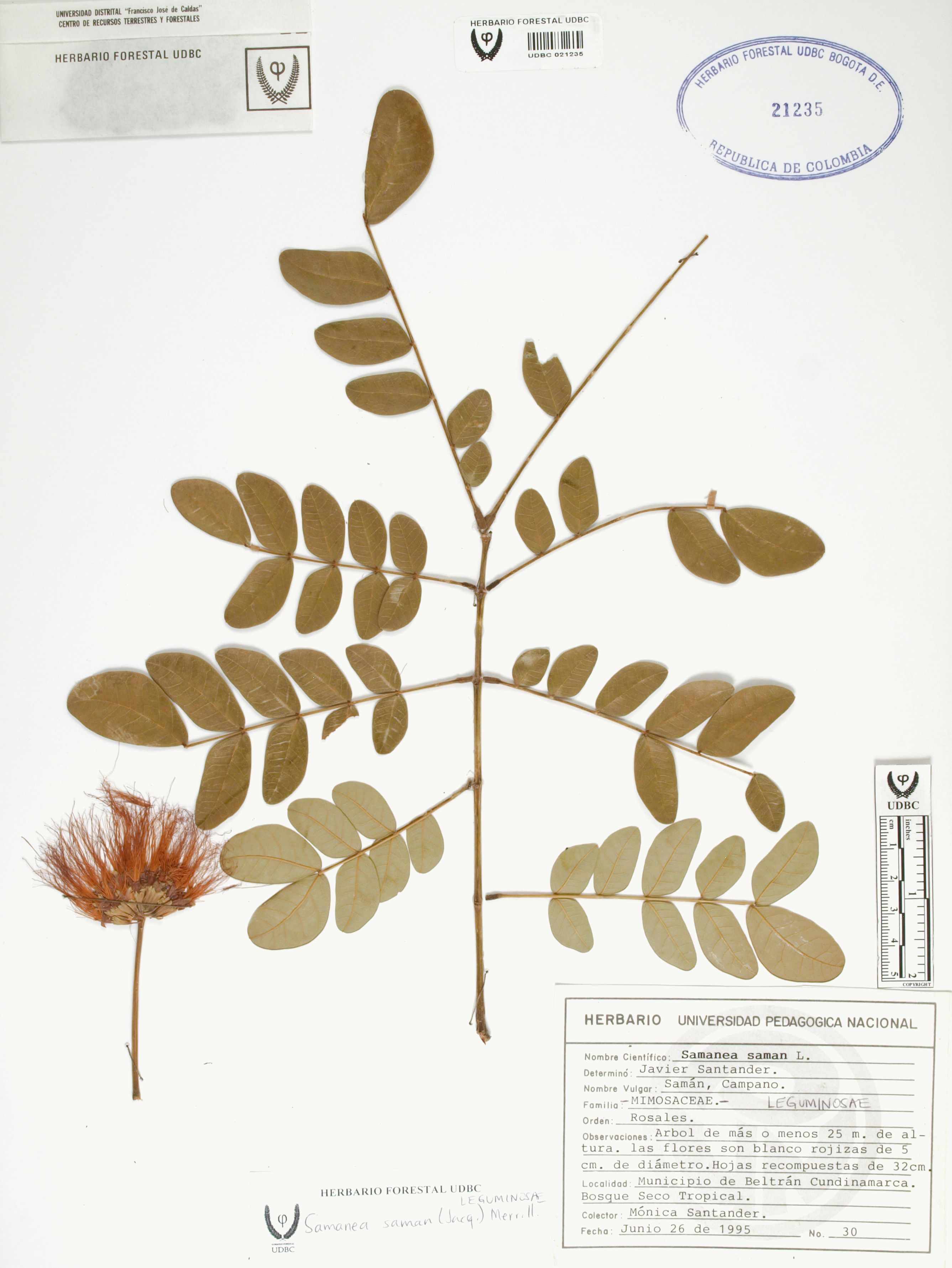 Fotografía del ejemplar Santander, M. 30, determinado como Samanea saman