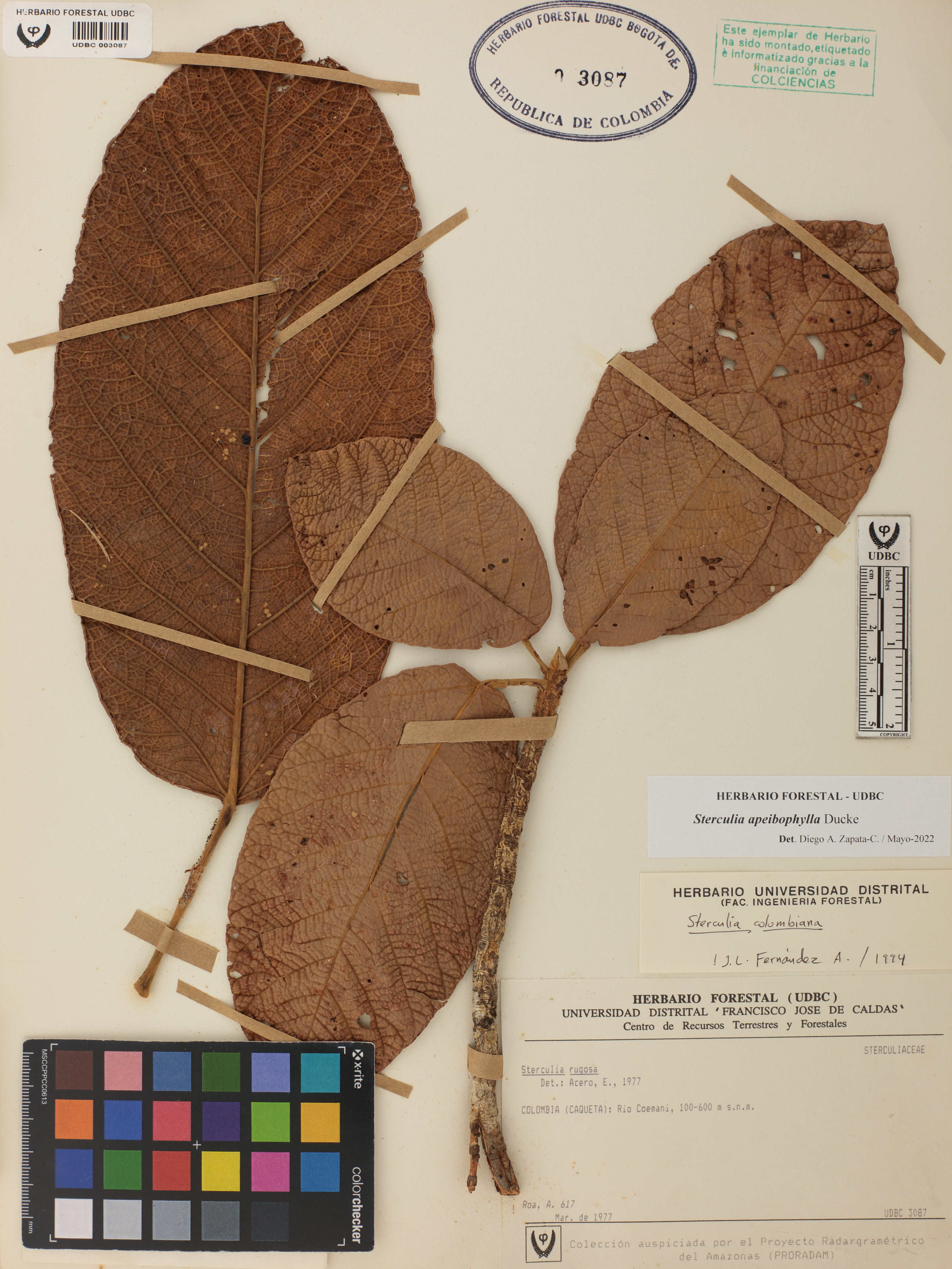 Fotografía del ejemplar Roa, A. 617, determinado como Sterculia apeibophylla en el año 2022