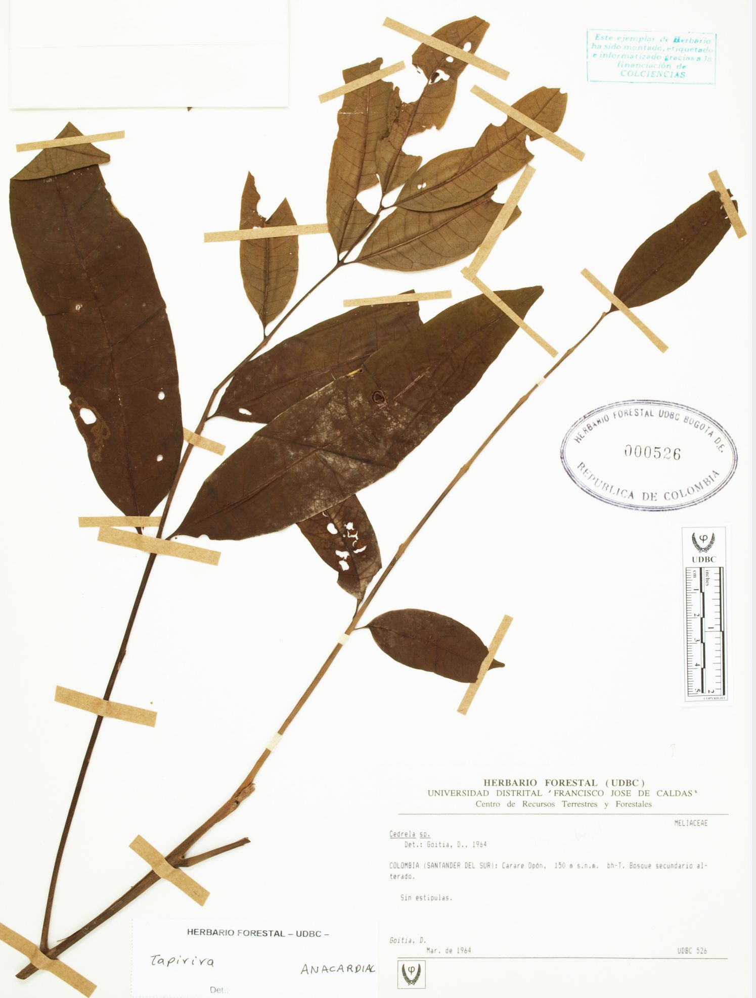 Fotografía del ejemplar Goitia, D., determinado como Tapirira guianensis en el año 2009
