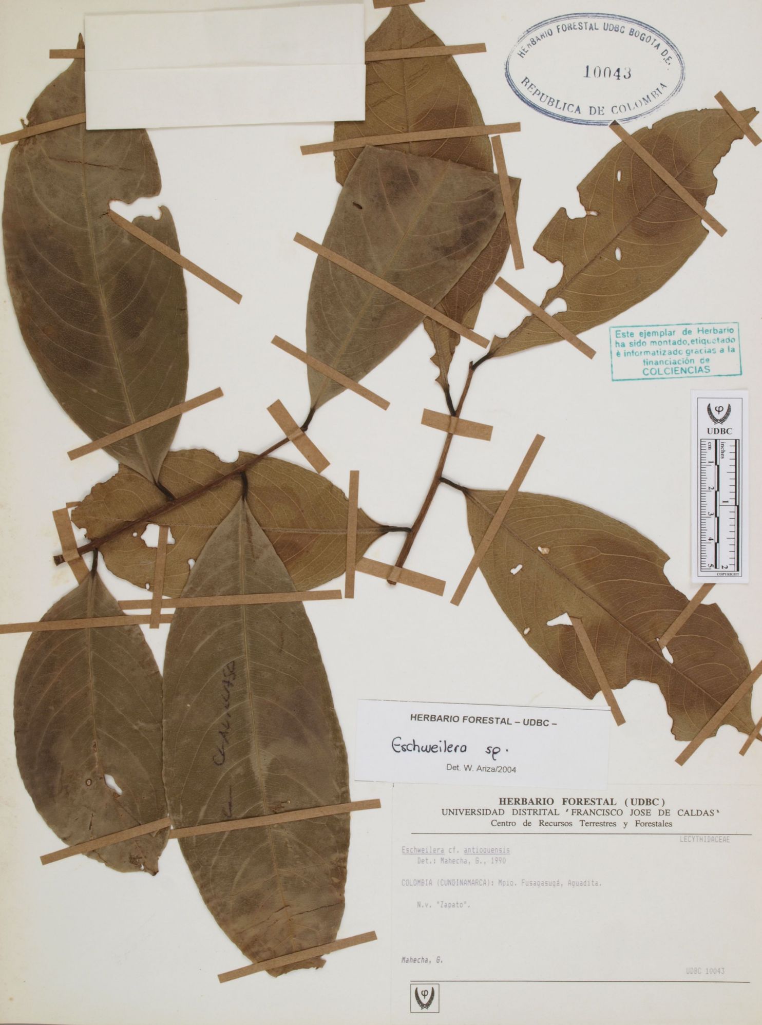 Fotografía del ejemplar Mahecha, G., determinado como Eschweilera antioquensis en el año 1990