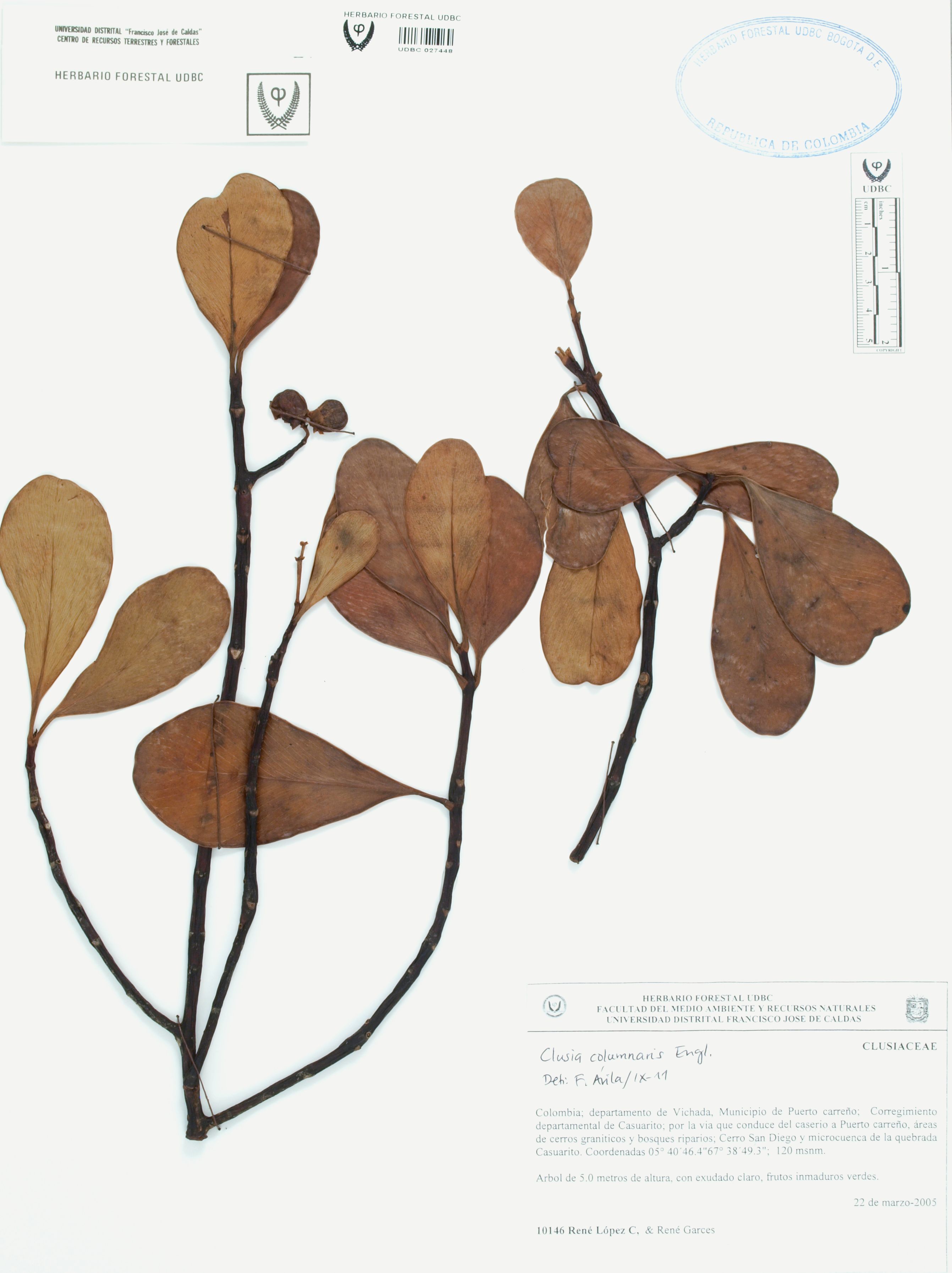 Fotografía del ejemplar López, R. 10146, determinado como Clusia columnaris en el año 2012