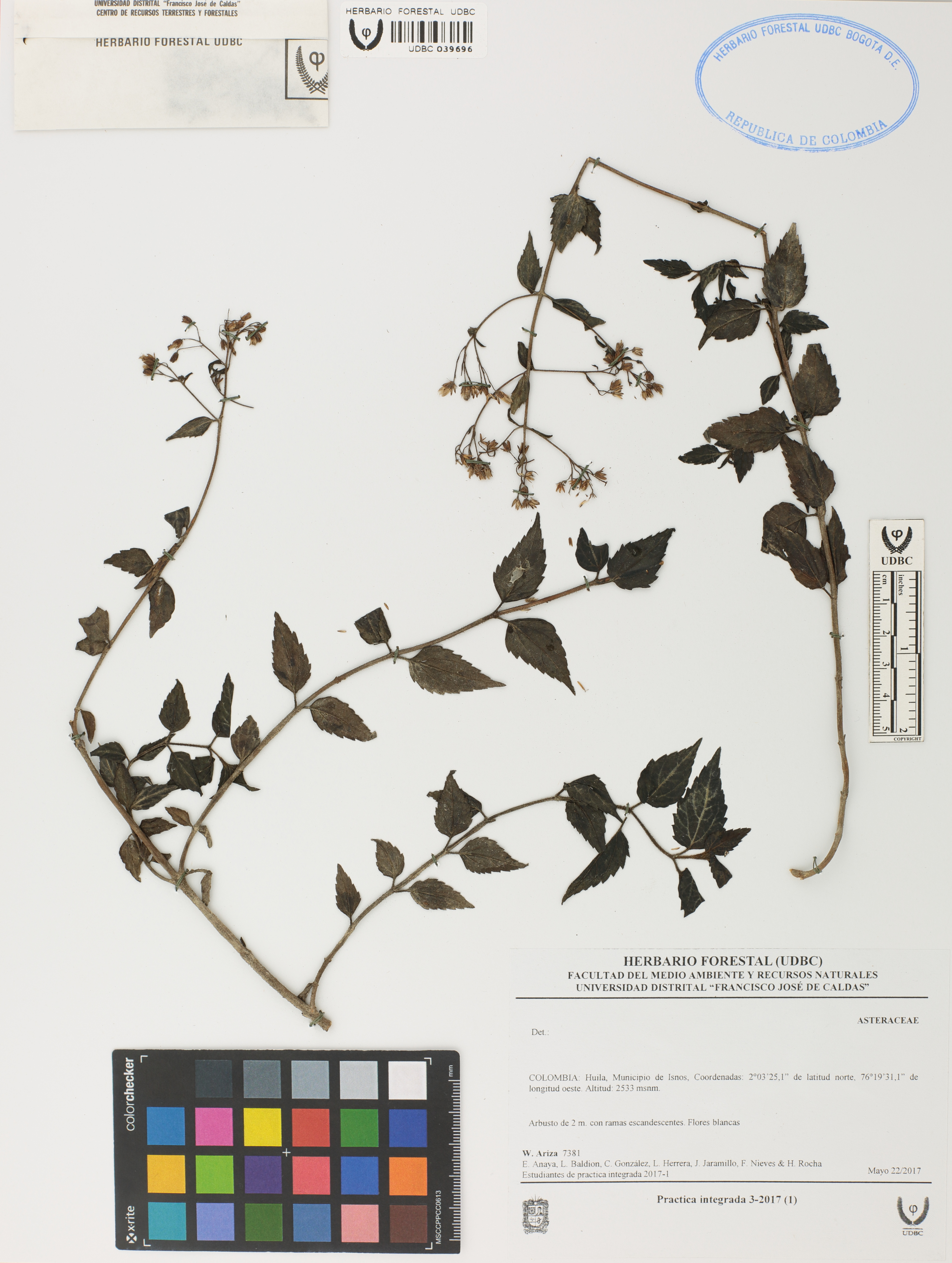 Fotografía del ejemplar Ariza, W. 7381, determinado como Asteraceae