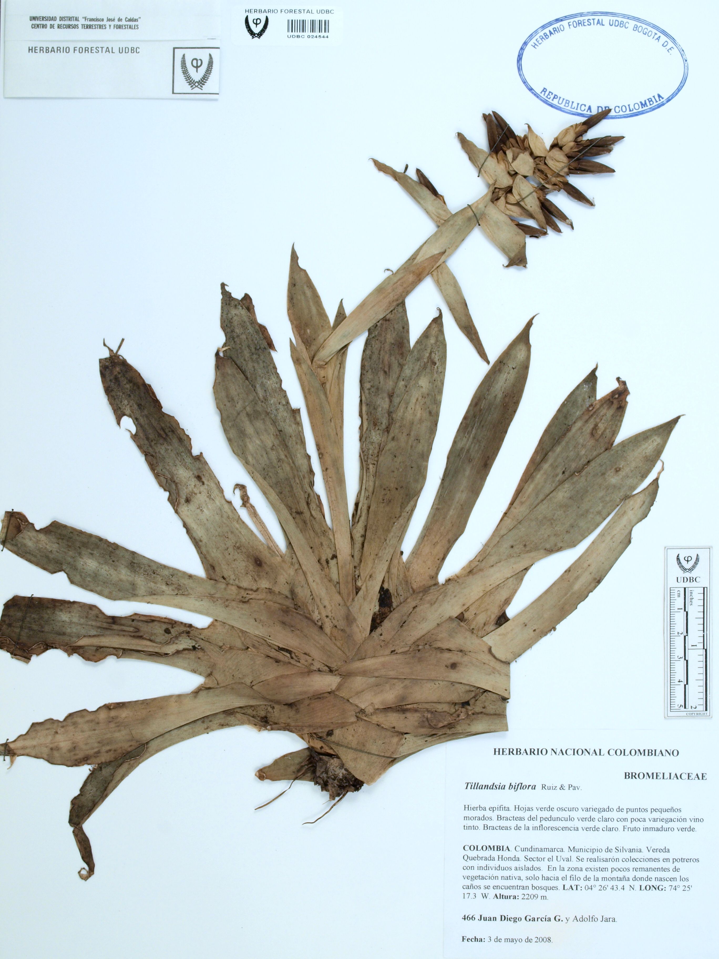 Fotografía del ejemplar García, J. 466, determinado como Tillandsia biflora